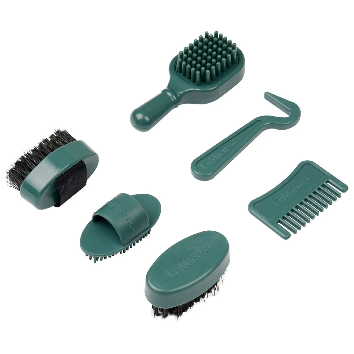 - Includes brushes, curry comb, sponge, mane comb and hoof pick
