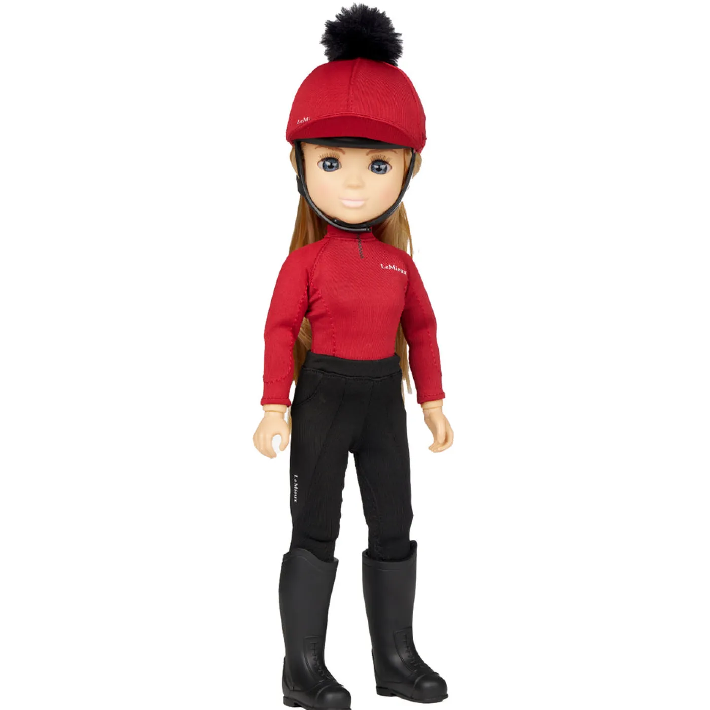 One of several interactive, fully articulated, high-quality equestrian dolls with individual personalities and matching outfits in LeMieux core colours. Energetic and confident Chloe is a rider who loves to show off her jumping skills. Chloe has luscious, real-feel, brushable long blonde hair and natural eyelashes. She comes wearing removable replica LeMieux riding wear in Chilli Red, with a removable riding helmet and boots.