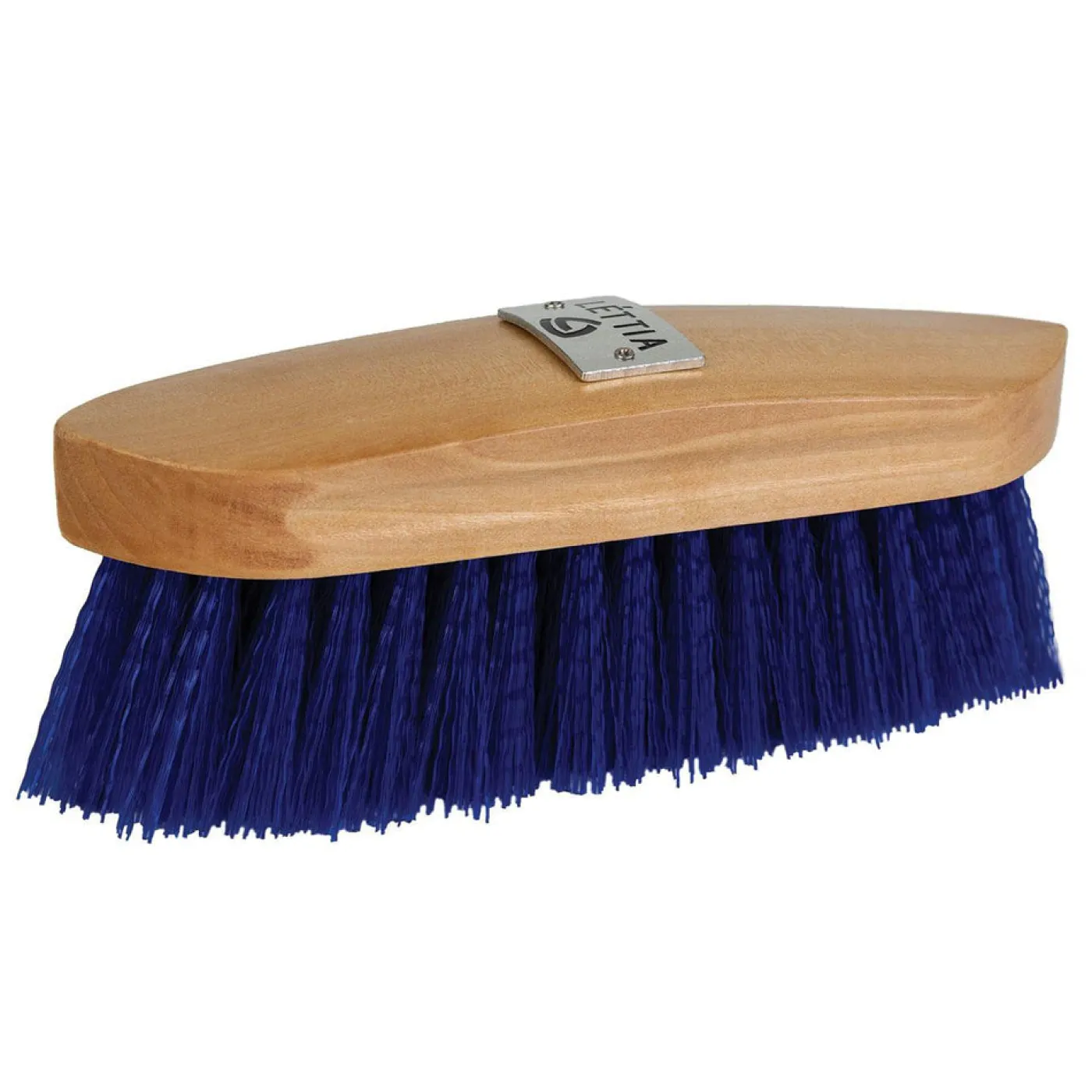 Lettia plastic bristle dandy brush with wood back helps flick dirt away from the coat, a staple for any grooming kit. The stiff bristles allow for a deep penetration of the coat to get even the most caked on dirt. The brush has a long wooden back complete with ridges for easy handling.