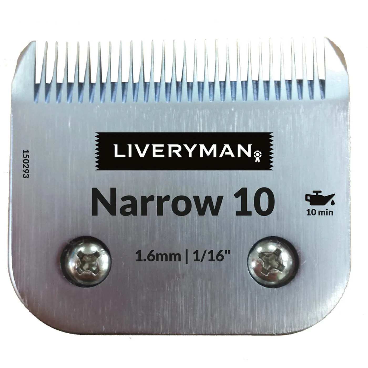 Specifically designed for equine use, this high-carbon steel blade will stay sharper, longer. High-carbon will help to resist rust and run cool during operation. The narrow width is perfect for clipping smaller, awkward areas, or for use on pets. Compatible with the Liveryman 100 Cordless Clipper. May be compatible with other clipper brands such as Heiniger, Wahl and Oster. Cutting width – 46 mm/1.8 in. Cutting height – 1.6 mm or 1/16 in. Size 10 blade.