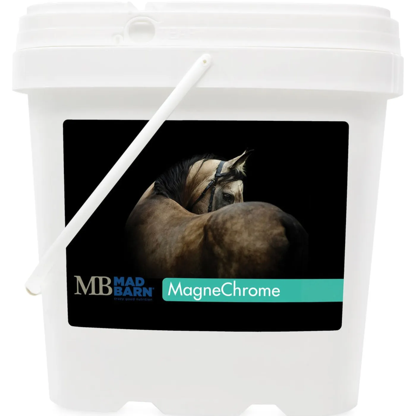 Mad Barn MagneChrome is a pelleted formula that may support normal glucose metabolism and regulating insulin production in horses with metabolic syndrome, laminitis, and Cushing’s (PPID). Contains chromium yeast, magnesium, turmeric, CoQ10 and more.