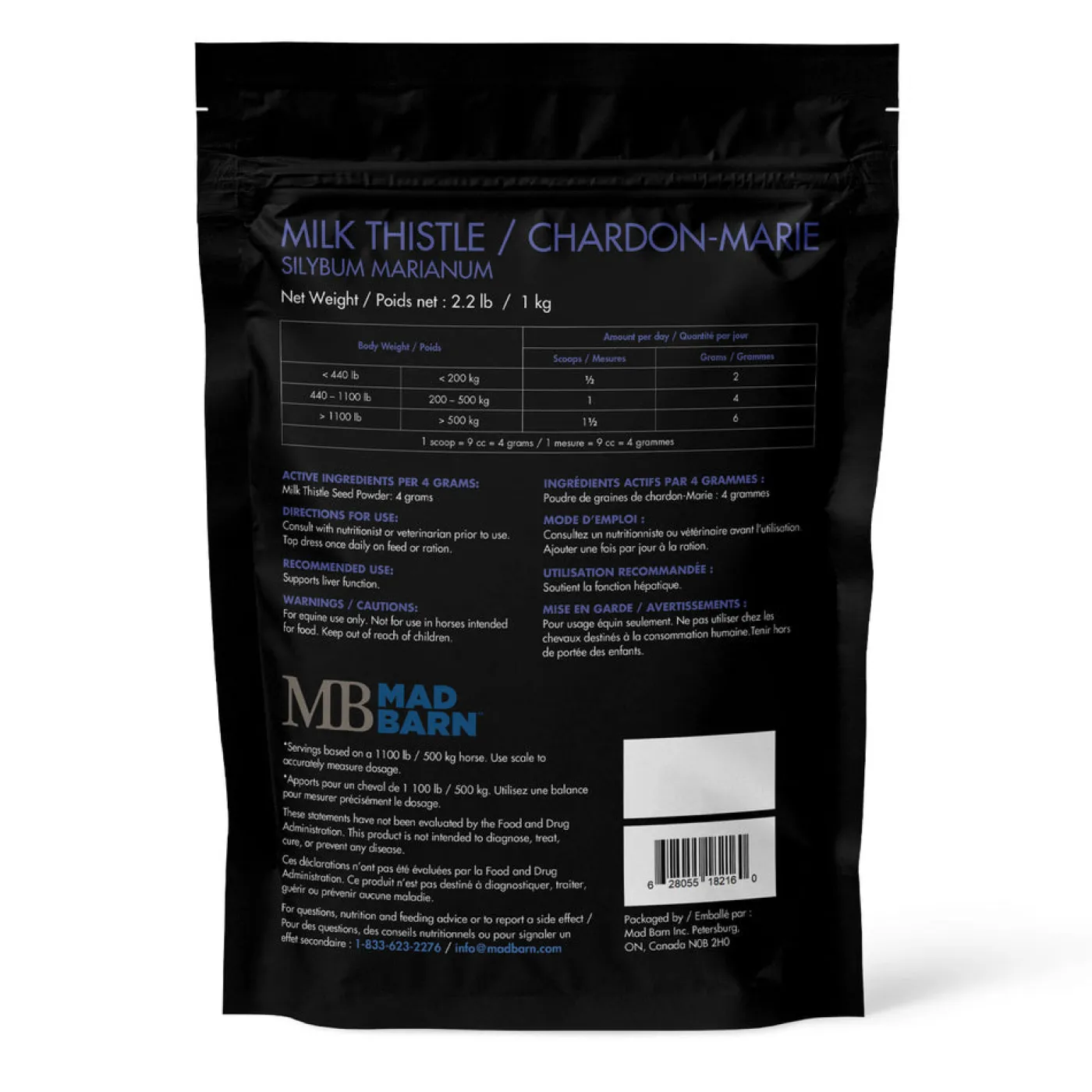 Mad Barn’s Milk Thistle is a dried, powdered form of the seed of the Silybum marianum plant. This herb can be added to equine diets to support healthy liver function.