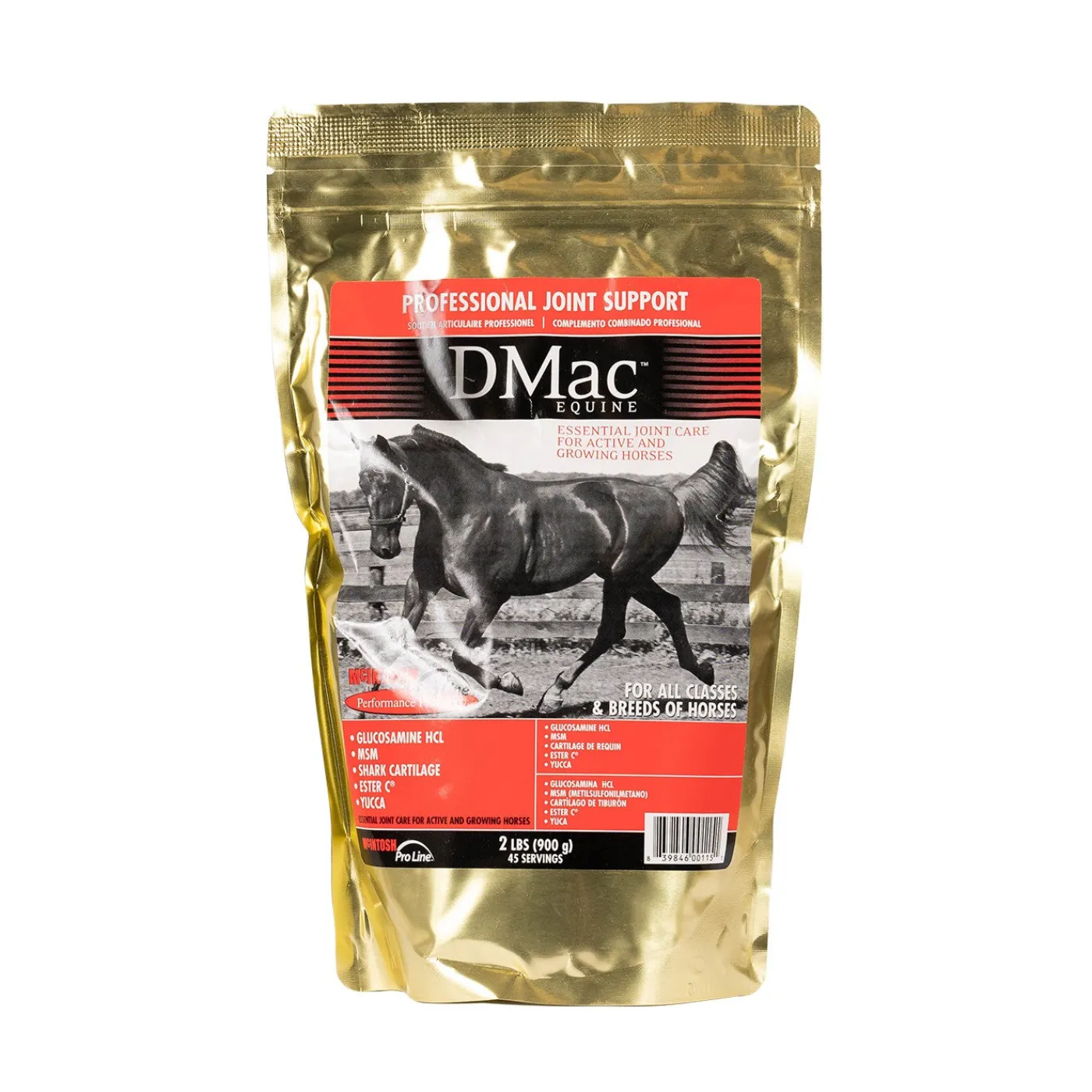 Designed for Doug McIntosh to use in his stable to help maintain healthy joints for horses in training and racing. DMac™ can also help in providing the proper nutrients to stimulate proper bone development in growing yearlings to prepare them for a life of strenuous competition. DMac™ is a synergistic combination of MSM, glucosamine hydrochloride, shark cartilage, Ester C®, yucca, and flaxseed meal.
