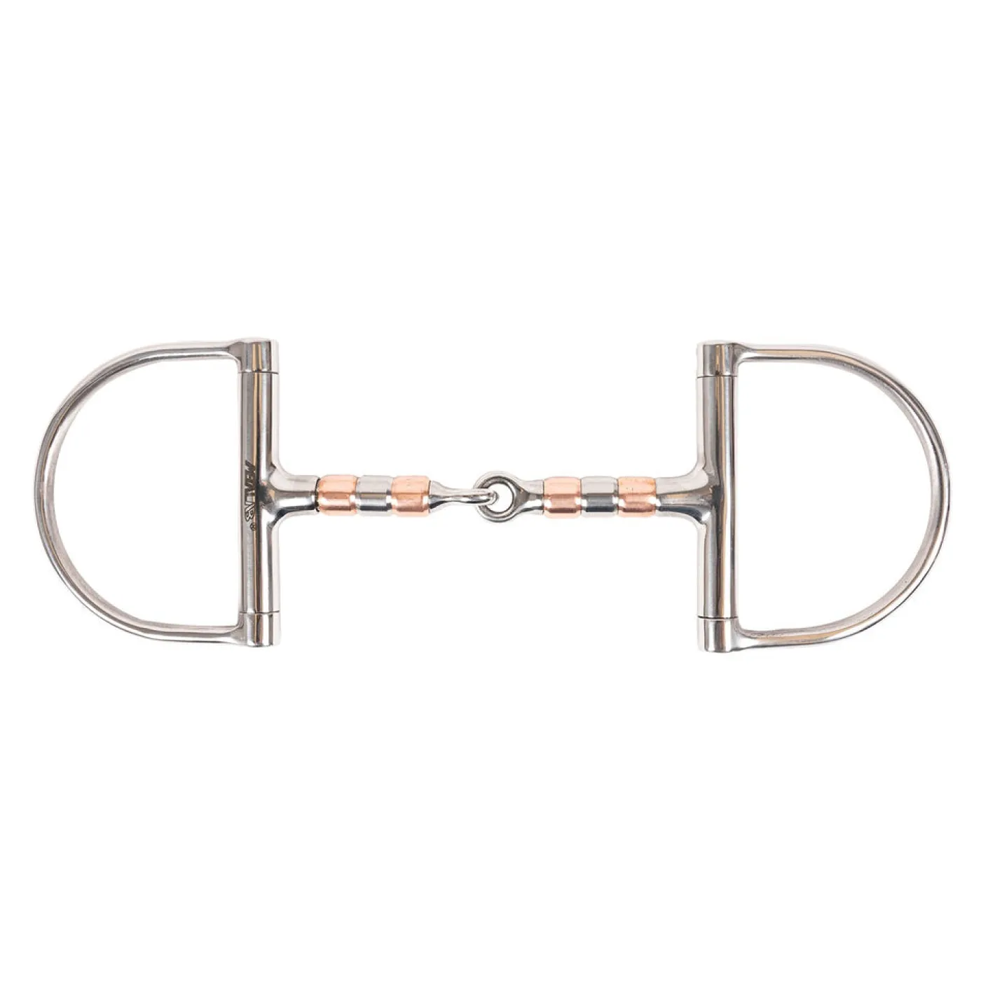 The dee ring cheek pieces support the sides of the horse’s mouth while preventing pinching. The broken mouthpiece incorporates copper rollers to promote salivation.