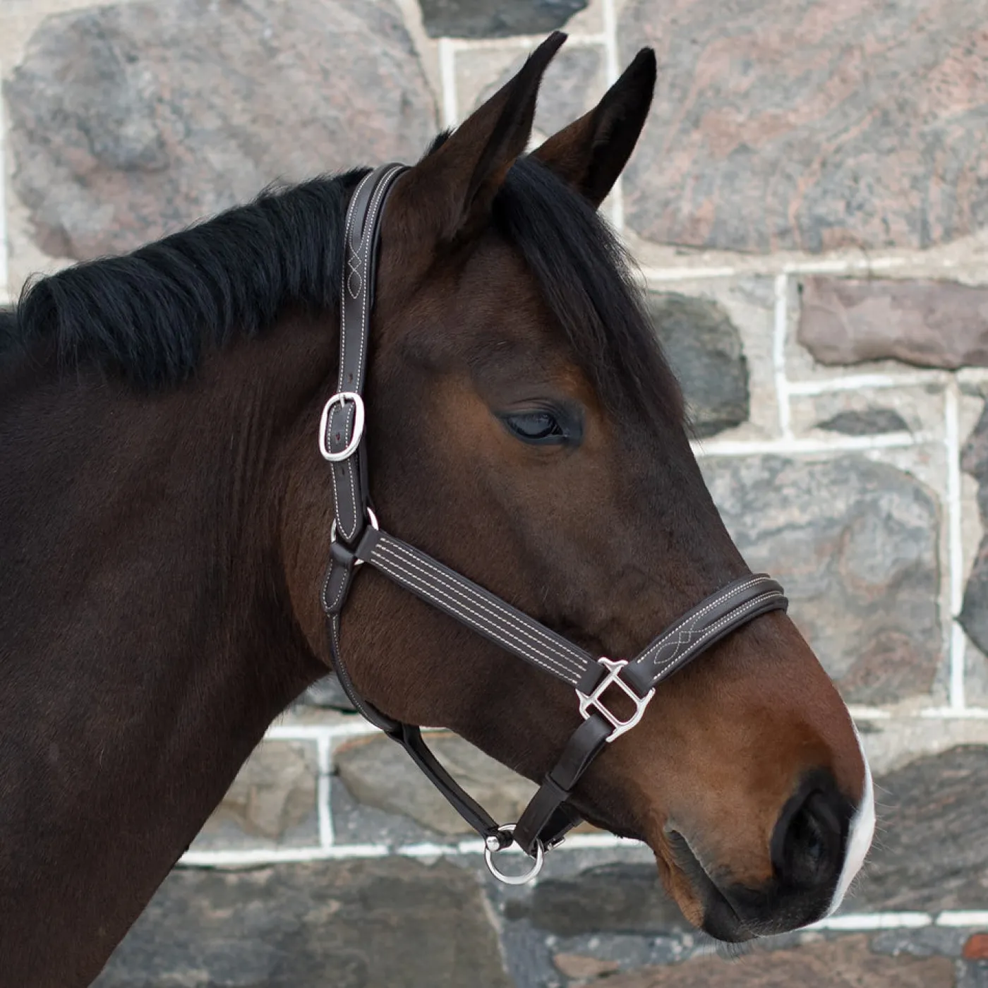 Made from soft Italian leather this beautiful halter is adorned with elegant cream coloured stitching giving a polished look to your horse.