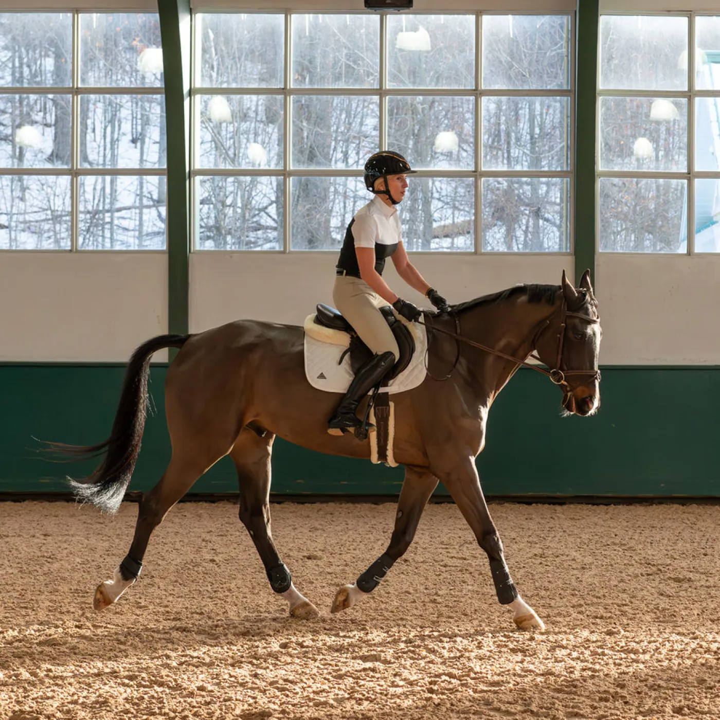 A breech with the perfect blend of performance and elegance for the show ring. Crafted from a breathable, durable fabric, the Nikara Altus Breech offers superior abrasion resistance and a high stretch recovery. This fabric resists stains and fading, maintaining its pristine look throughout the season. These mid-rise breeches feature a classic euro seat design with silicone knee patches. Complete with integrated stretch socks ensure a comfortable fit with boots, minimizing bulk and maximizing flexibility.