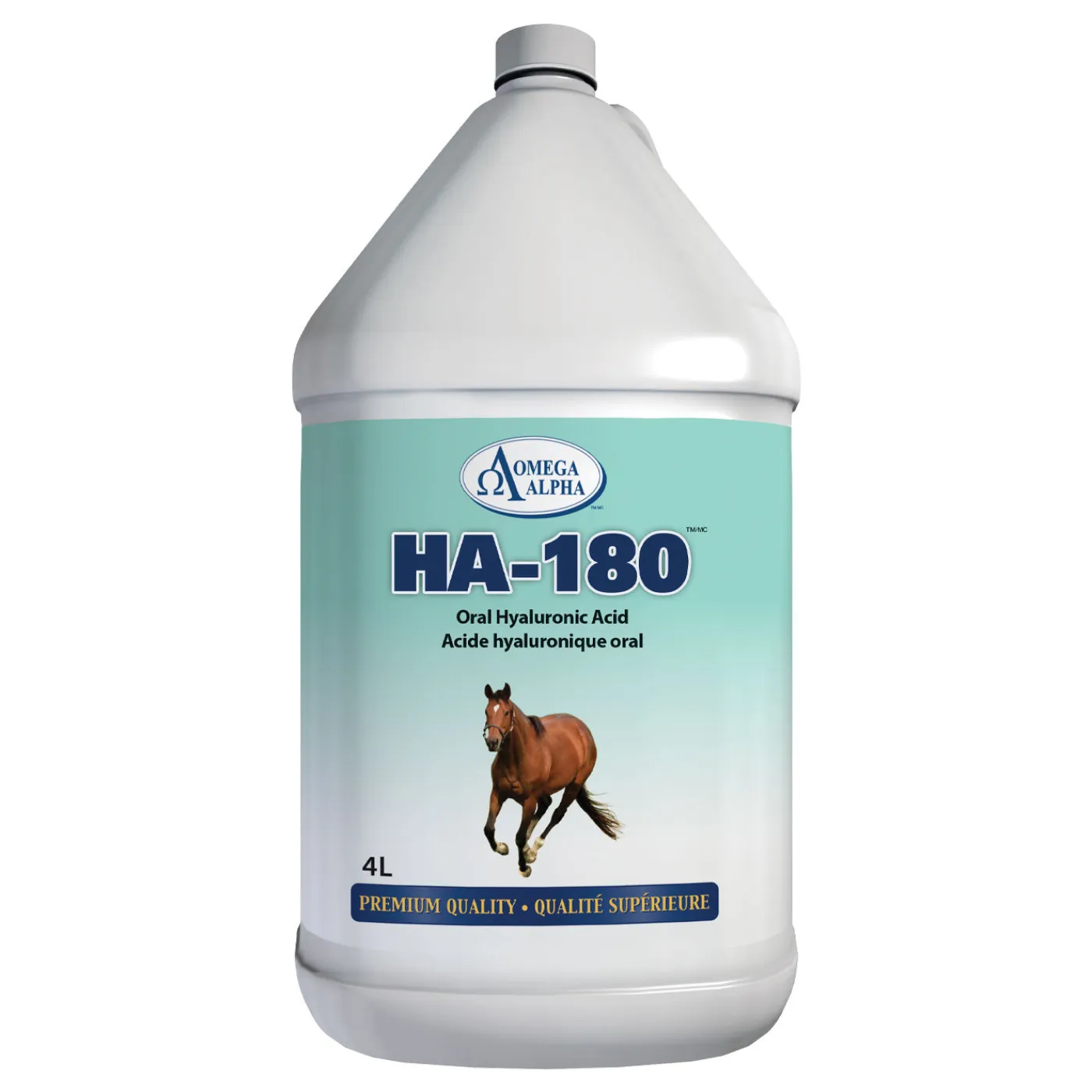 Omega Alpha HA-180 promotes joint health. Contains hyaluronic acid and licorice. Contains no corn, dairy, gluten, soy, wheat or yeast. Liquid. 4 L/1 gallon.