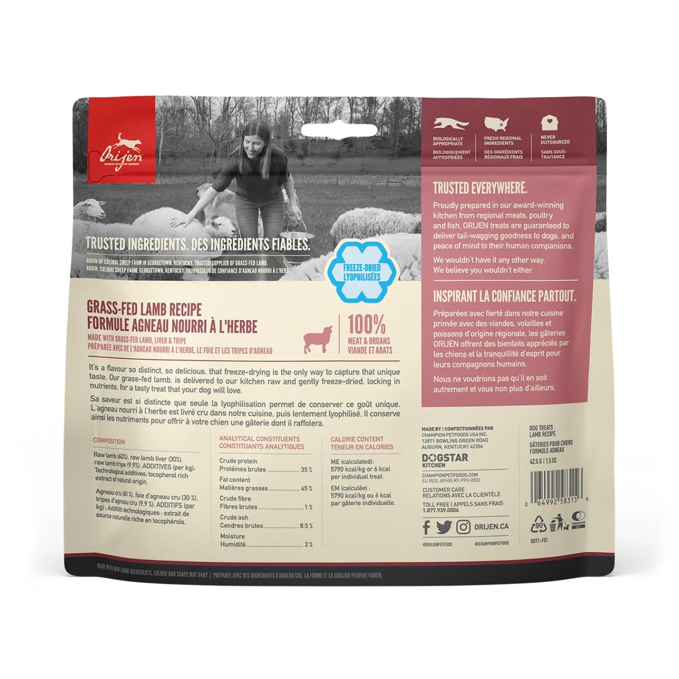 Orijen Freeze Dried Treats are crafted with the same quality ingredients that make up our trusted foods. Featuring a single animal protein, Orijen grass-fed lamb treats contain 100% raw lamb ingredients, gently freeze-dried to lock in the rich protein and nutrients, and that unique, delicious flavour. Made from 100% premium animal ingredients. Suitable for all breeds & life stages.