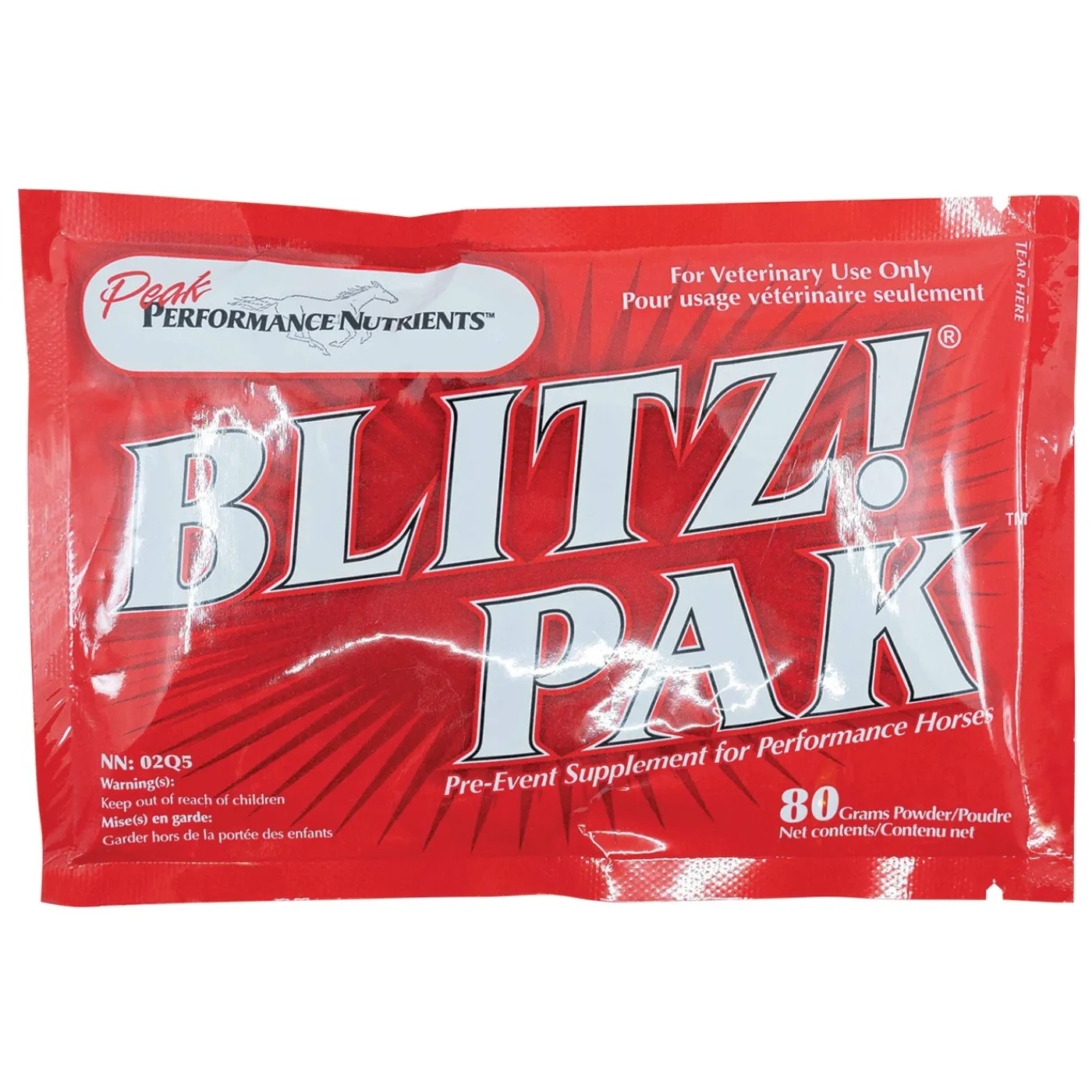 The Peak Performance Blitz! Pak provides support for energy and endurance in exercising horses. Sold in an easy-to-feed single pack. Oral powder. 80gm.