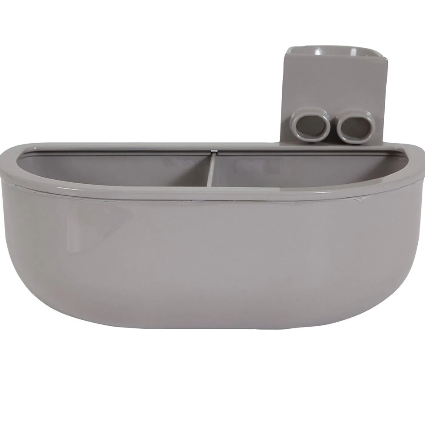 The Kennel Cup Double Dinner bowl is refillable from the outside of the kennel and works well with wire or plastic kennels. The funnel allows pet parents to fill the bowl without opening the door. BPA and lead free.