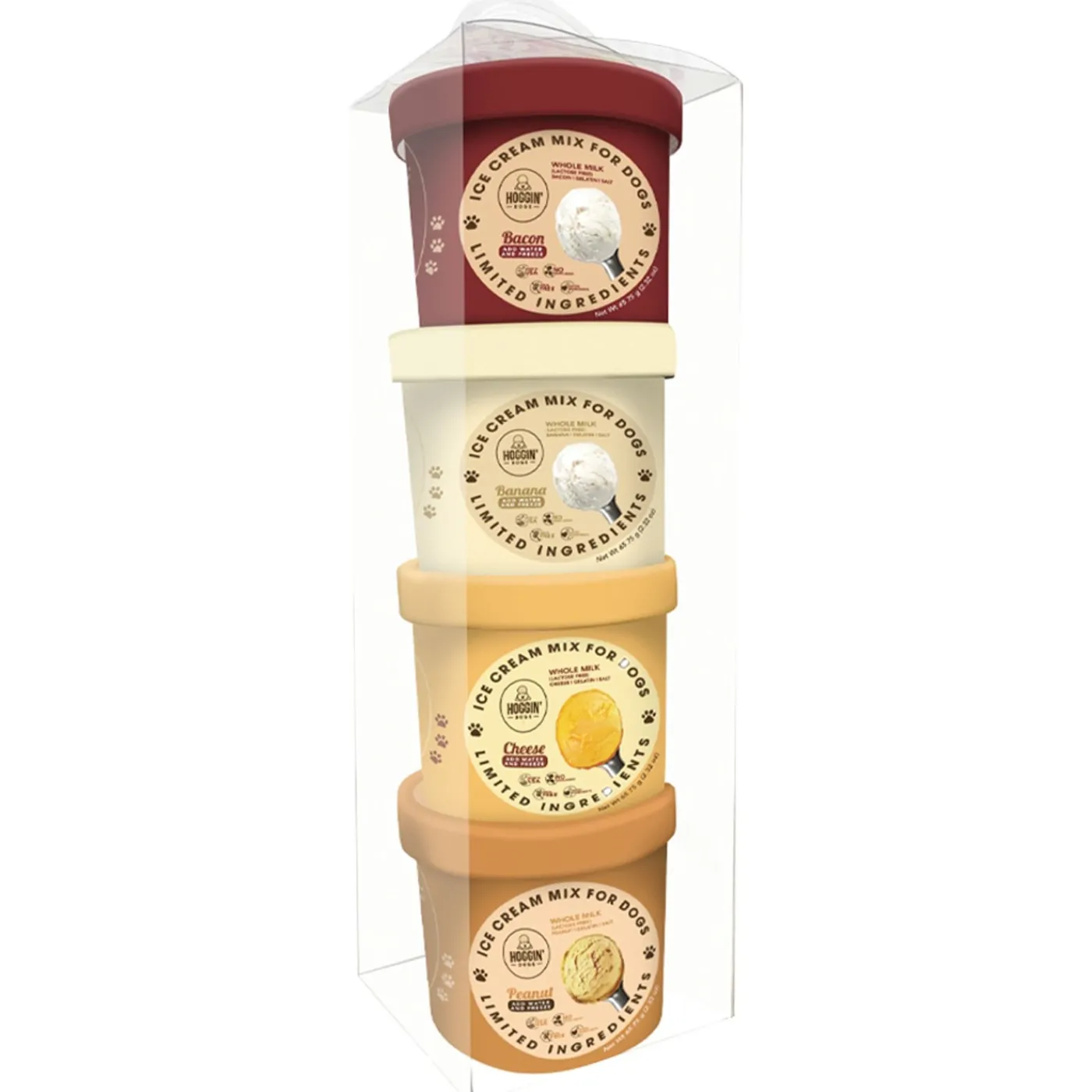 Puppy Cake Hoggin’ Dogs Ice Cream Mix offers a savoury, decadent, and delicious treat that your pup will love. Lactose free with no added sugar for a treat you can feel good about. Simply add water, blend, and freeze. Set includes all four flavours: Bacon, Banana, Cheese, and Peanut Butter.