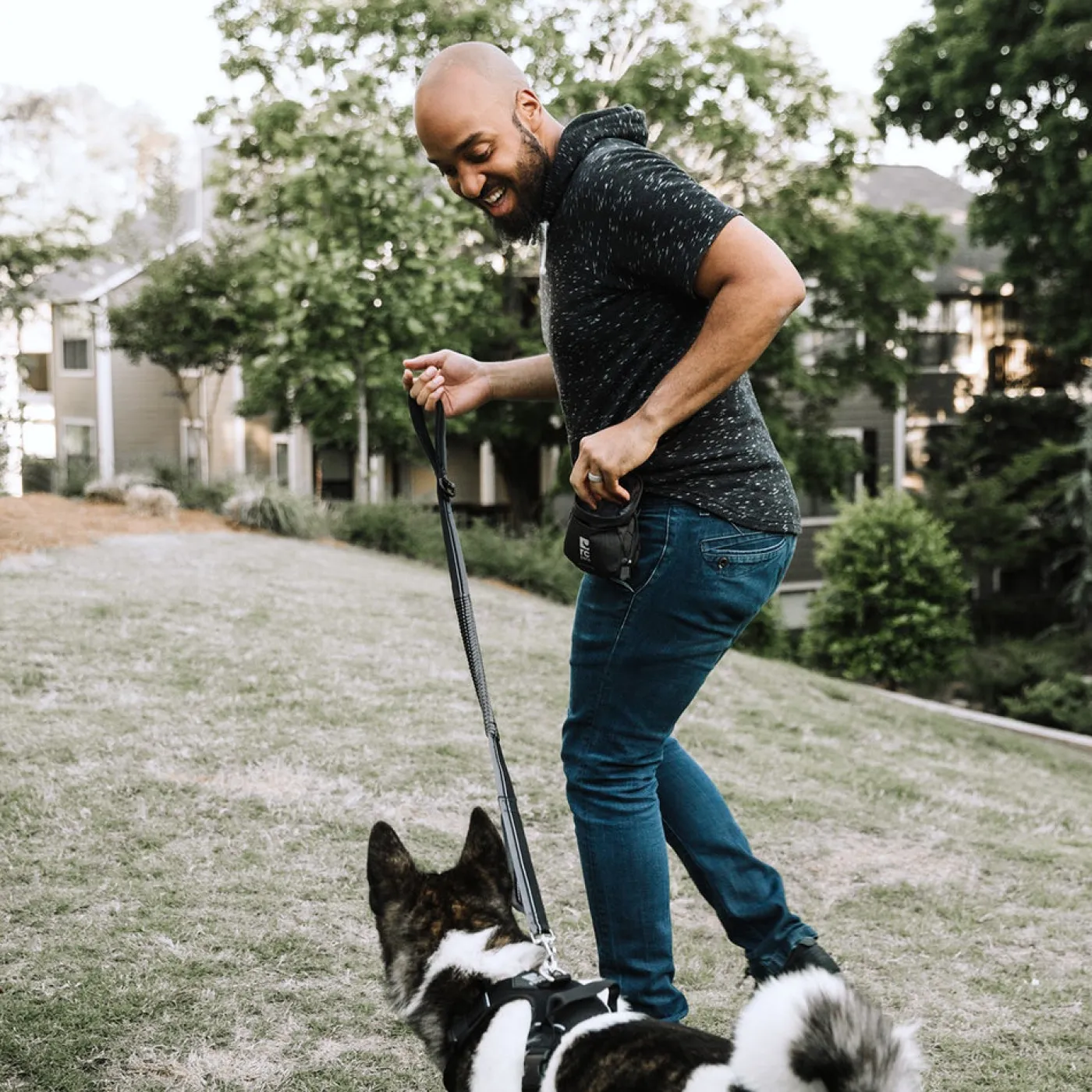 Need to reward some good behaviour? Make sure you have your treats handy with the Essential Treat Bag. This durable treat bag clips easily to your belt and has a structured opening that keeps your treats secure when training yet allows easy access for rewarding your perfect pup! The built-in plastic rim helps to keep the bag open and provide easy access during training. Draw cord closure helps keep treats in place during travel and transport. Rubber port provides easy access to waste bags, and the reflective logo provides additional visibility. Made with a durable, water resistant, ripstop outer shell and a built-in belt clip attachment. Machine washable. Made from 100% polyester ripstop with a 100% polyester lining.