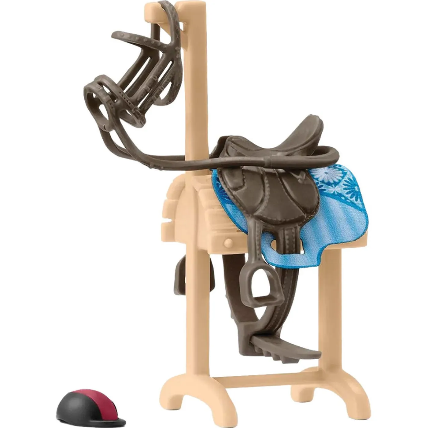 - x1 saddle stand, x1 saddle, x1 bridle, x1 saddle blanket, x1 helmet
