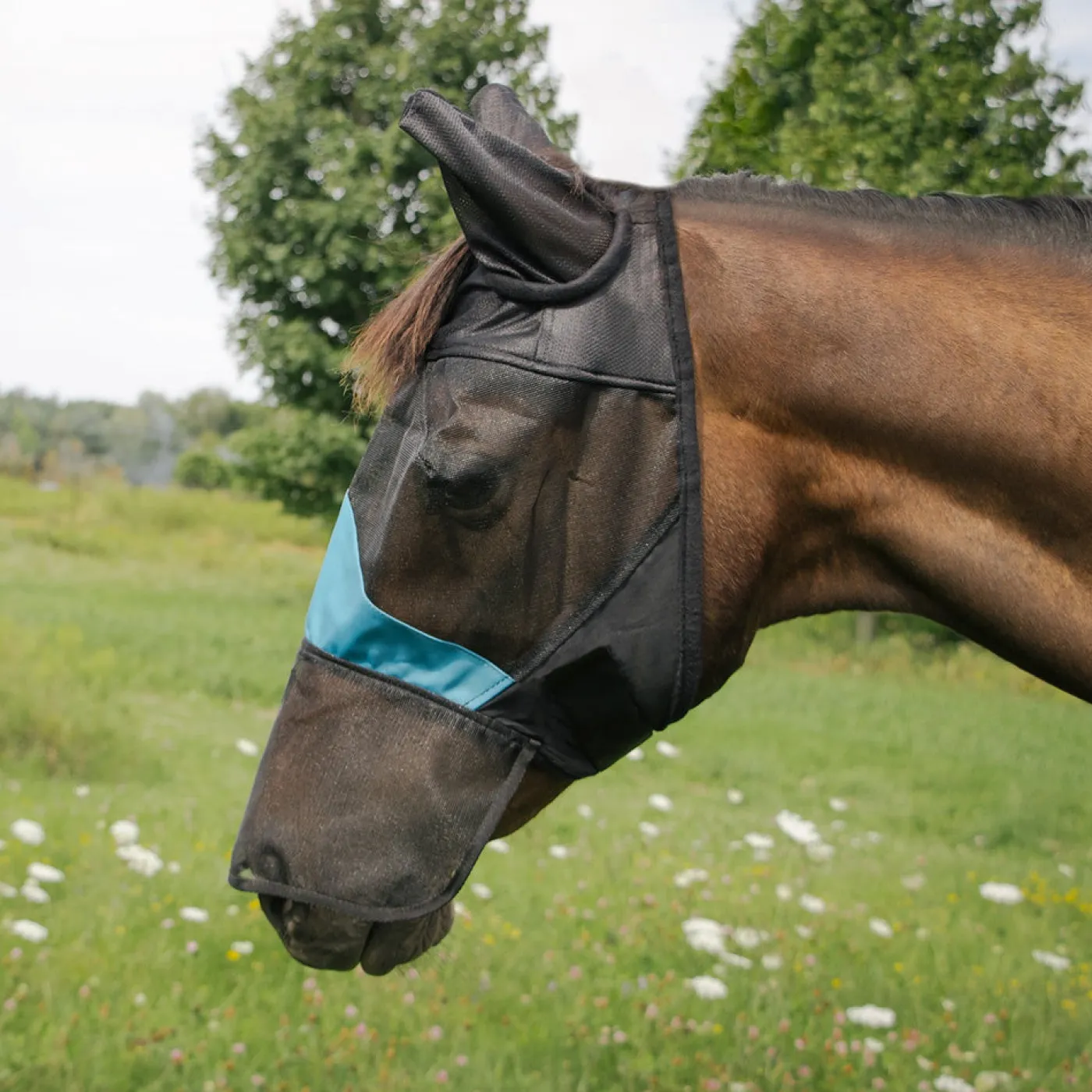 The Shedrow Deluxe Fly Mask features extra protective coverage that covers right down to your horses nostrils protecting nose from sunburn. Complete with sturdy Velcro closure, ear cover and and an opening for the forelock.