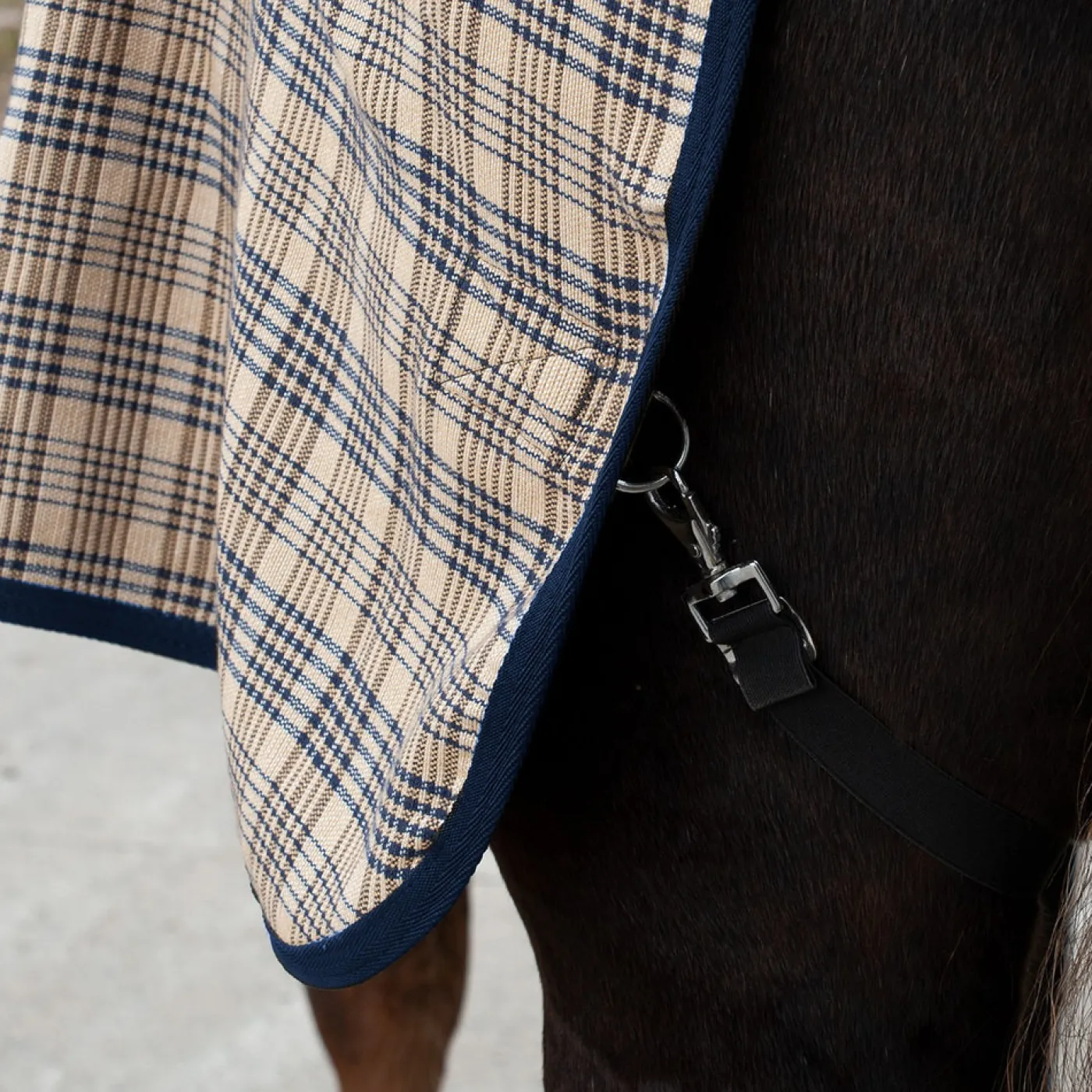A classic heavyweight stable sheet that is breathable and durable. The Shedrow Heavyweight Plaid Blanket is made from a multi-weave, acrylic fabric featuring a traditional plaid design with cross biased surcingles, stretchy inserts and a double buckle chest closure. This blanket is ideal for use in the stable or at shows, and provides extra warmth for those cooler fall days. Comes with leg straps.