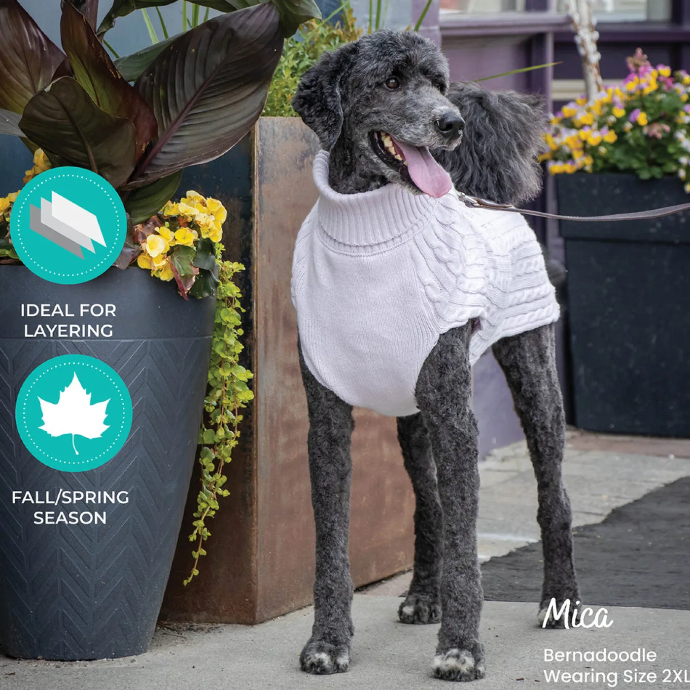 Perfect for adding a layer of extra warmth on a chilly day, the Shedrow K9 Brentwood Cable Knit Sweater easily transitions between relaxing indoors and exciting outdoor adventures. Traditionally styled in a cozy cable knit and featuring stretchy leg openings and hem for a snug fit and optimal comfort. Now in additional sizes for larger dogs!