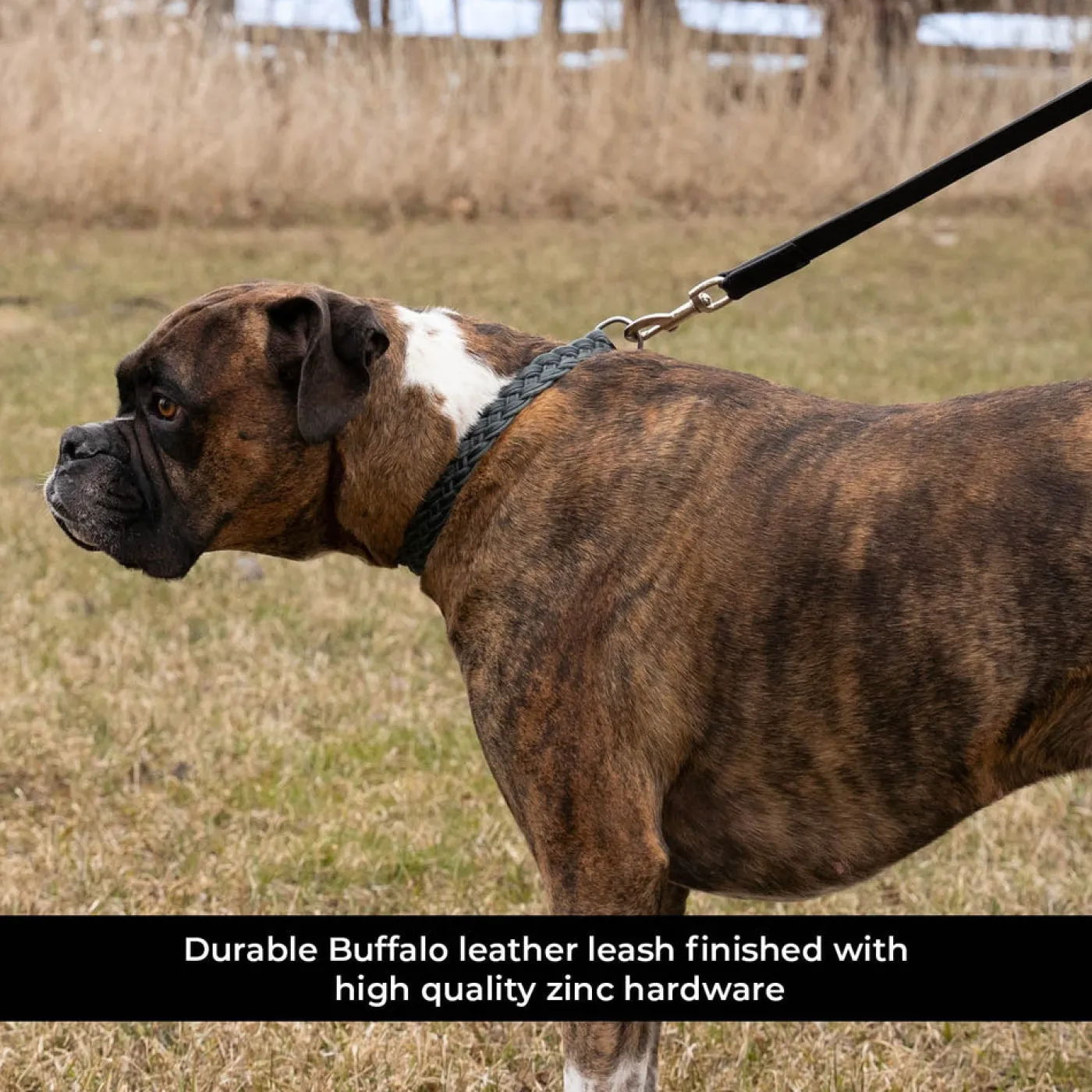 The Shedrow K9 Rideau Leash is made to match the Rideau Collar, combining function and style with poly-cotton rope and buffalo leather construction. Complete with a braided handle for added comfort and security in the hand. Finished with high quality zinc hardware.