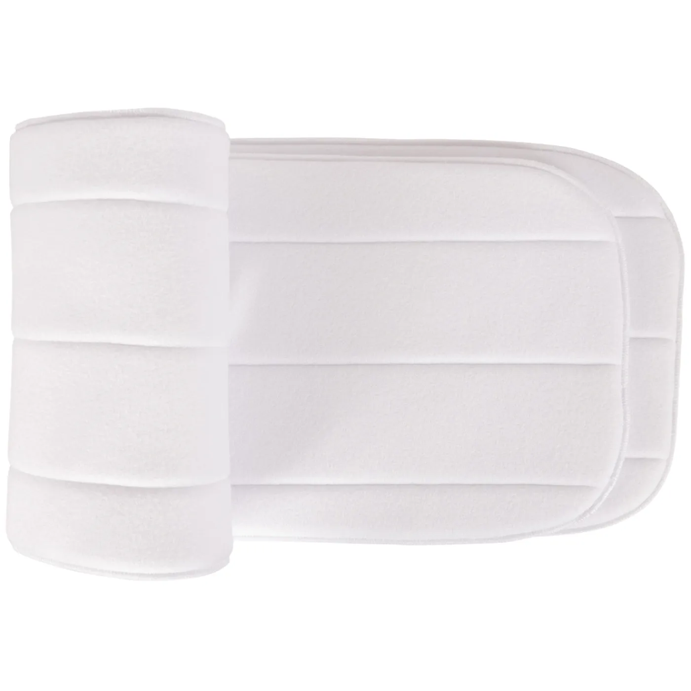 For use with standing or stall bandages, Shedrow No Bows have a plush foam core with a soft, cotton exterior. 10 in. wide x 31 in. long. Pair.