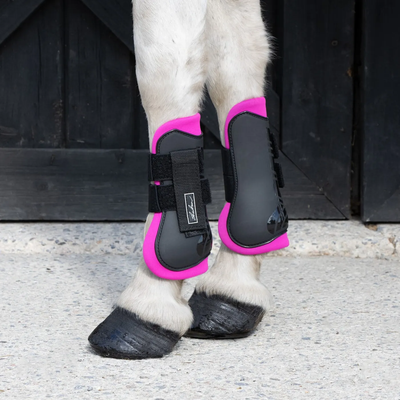 Your favorite Shedrow open front boots are now available in fun colours! These functional & durable boots offer protection for your horse’s front legs during exercise. Made from heavy duty polyurethane with a coloured neoprene and elastic liner, these boots provide premium protection while remaining lightweight. The double Velcro closure provides a secure, custom fit. Water resistant so you can ride in any weather. Sold as a pair.