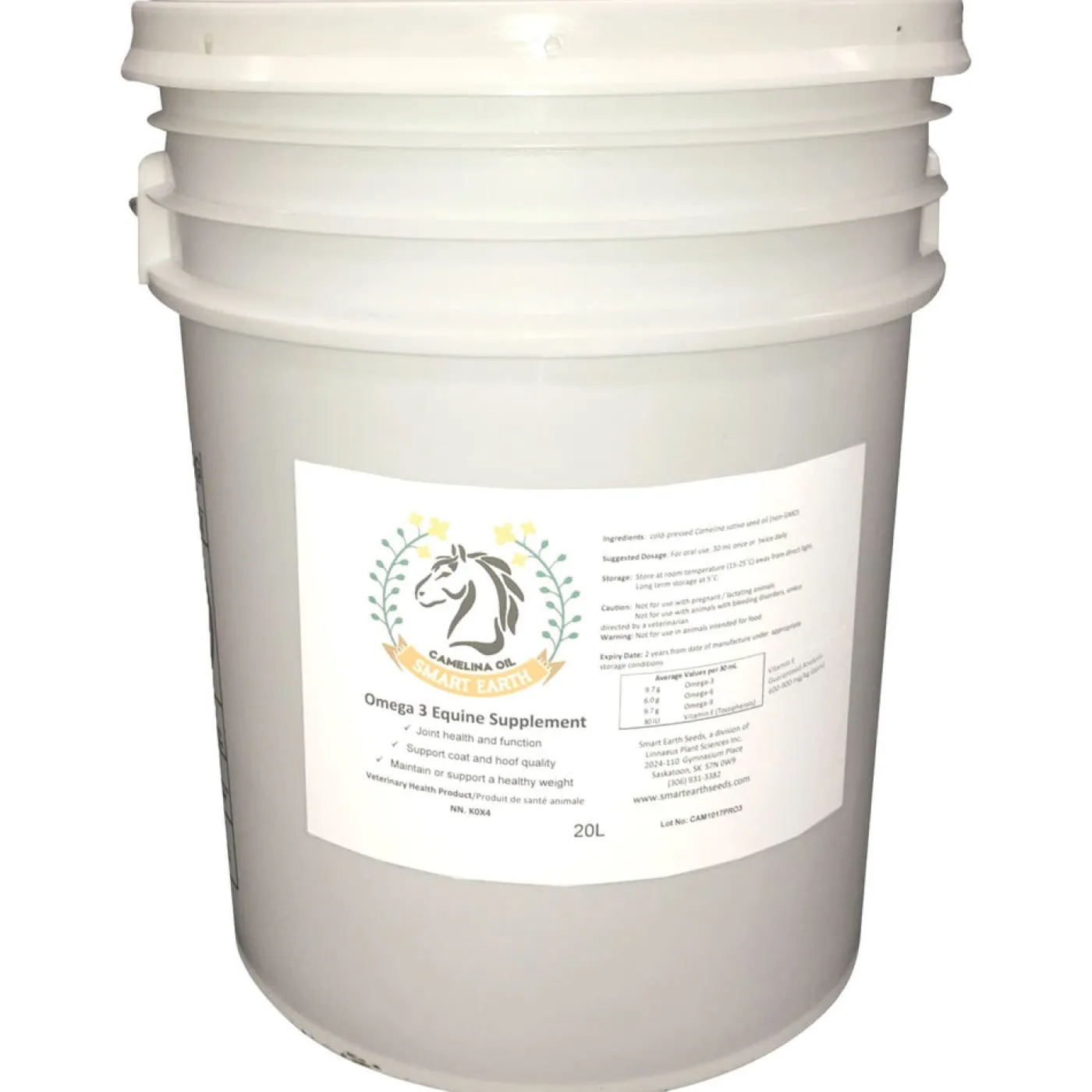 Smart Earth Camelina Oil is a palatable omega supplement that may promote healthy weight gain, support dry skin and coat, and support mane and tail quality. Camelina Oil contains Vitamin E that may help your horse grow a healthier coat. Relative to other vegetable sources of omega fatty acids, camelina oil contains the most balanced profile of omega 3 and 6 with a ratio 1.2-1.6:1 and high ALA content. Smart Earth Camelina Oil is non-GMO, glyphosate free, cold pressed and made in in a human food grade facility. Sustainably produced, Smart Earth uses crops that require minimal irrigation or fertilization, and has a smaller carbon footprint than protein-based omega sources such as fish oils. Produced in Saskatchewan, Canada.