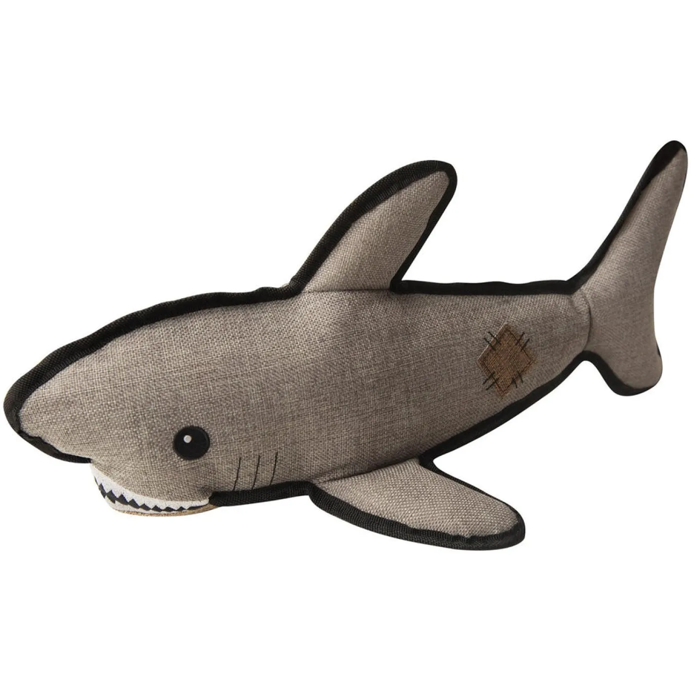 Two toys in one! Saul the Shark offers hours of playtime fun. Saul has a spiky hidden ball inside that squeaks. Getting to the ball is all the fun! Saul is made of durable linen material with crinkle inside and the bonus spiky ball. Great for larger sized dogs. All Snugarooz plush toys are made from safe, environmentally friendly non-toxic materials with durable construction throughout. Made from recycled water bottles. Measures 19″L.