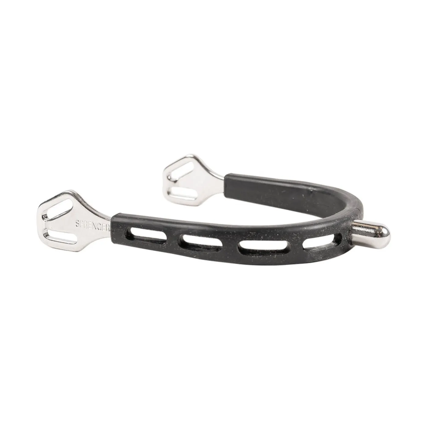 Superior design fits perfectly over riding boots, eliminating pressure points while offering stability for correct spur placement. Rubber covering over the stainless steel further secures the spur in place for enhanced performance and is less abrasive to boot leather.