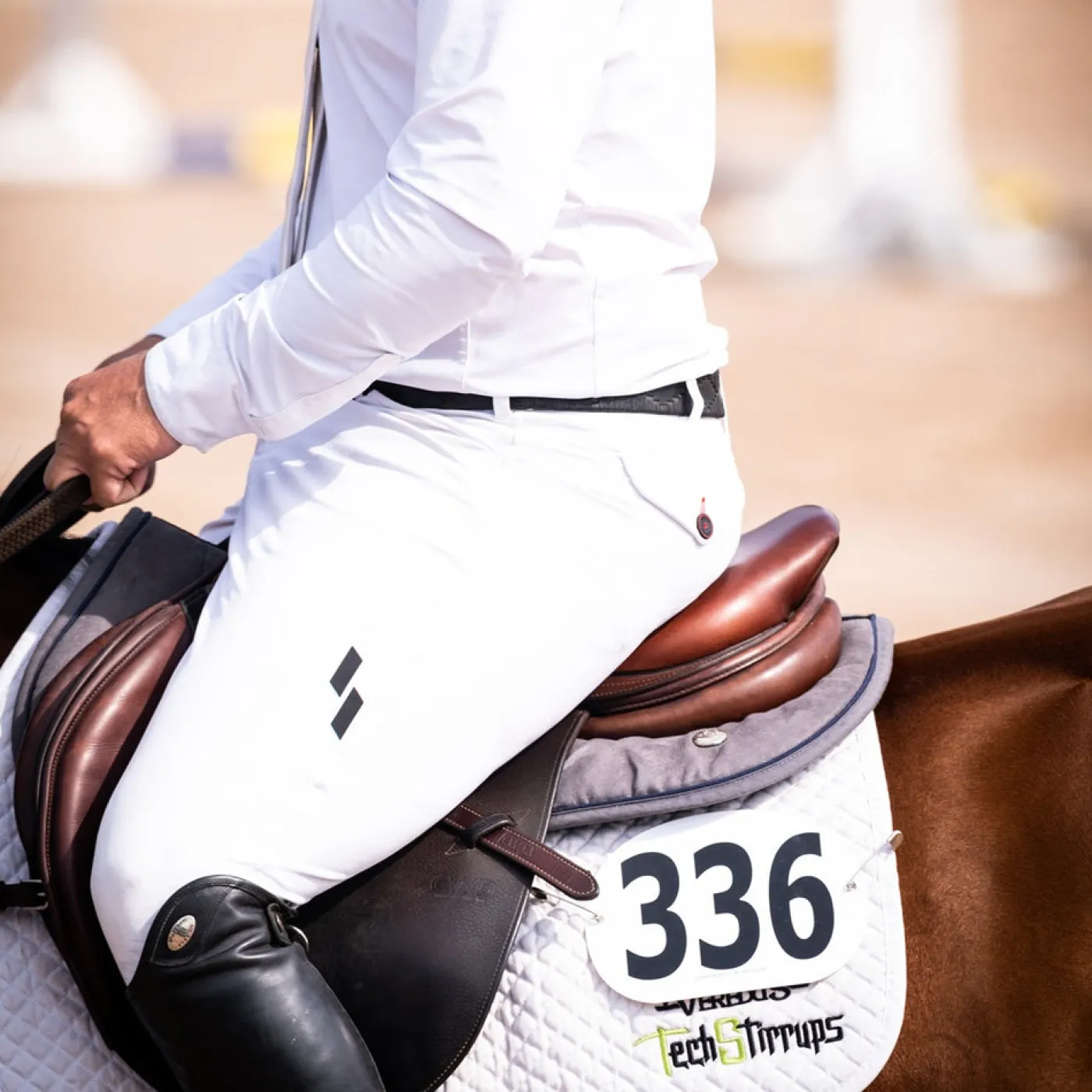 The Struck Series 50 Breech is made for sport. Constructed with the best design and technology to offer freedom of movement, comfort and durability, to increase level of performance. Constructed with Schoeller Prestige™ fabric to offer incredible stretch, shape retention, and breathability. Made to resist fading and stains. The flattering low-mid rise with custom waistband is super figure flattering, designed to keep shirts tucked-in and eliminate gapping. The soft stretchable lower leg cuff creates a smooth and comfortable fit under your boots, and is finished with a signature red sport-lock zipper, and grip knee patch system. Made from 100% man-made fibre.