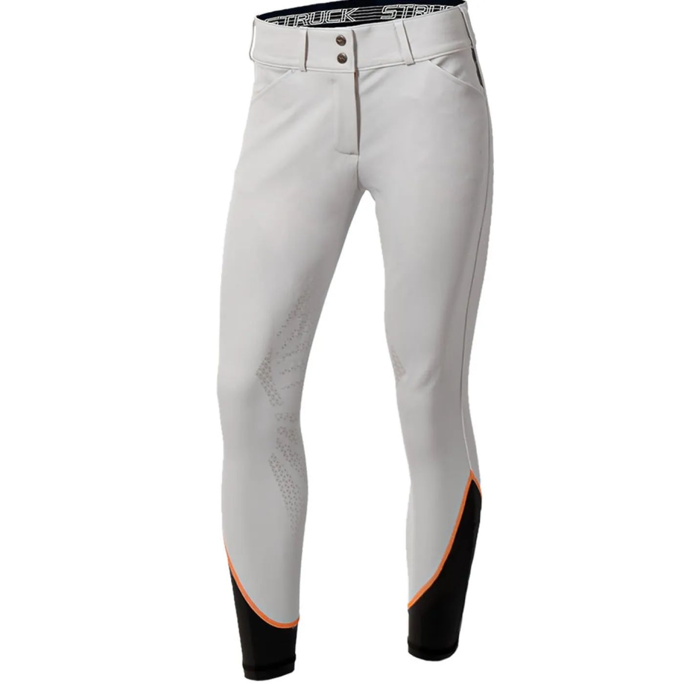 The Struck Series 50 Breech is made for sport. Constructed with the best design and technology to offer freedom of movement, comfort and durability to increase level of performance. Constructed with Schoeller Prestige™ fabric to offer incredible stretch, shape retention, and breathability. Made to resist fading and stains. The flattering low-mid rise with custom waistband is super figure flattering, designed to keep shirts tucked-in and eliminate gapping. The soft, stretchable lower leg cuff creates a smooth and comfortable fit under your boots, and is finished with a signature red sport-lock zipper, and grip knee patch system. Made from 100% man-made fibre.