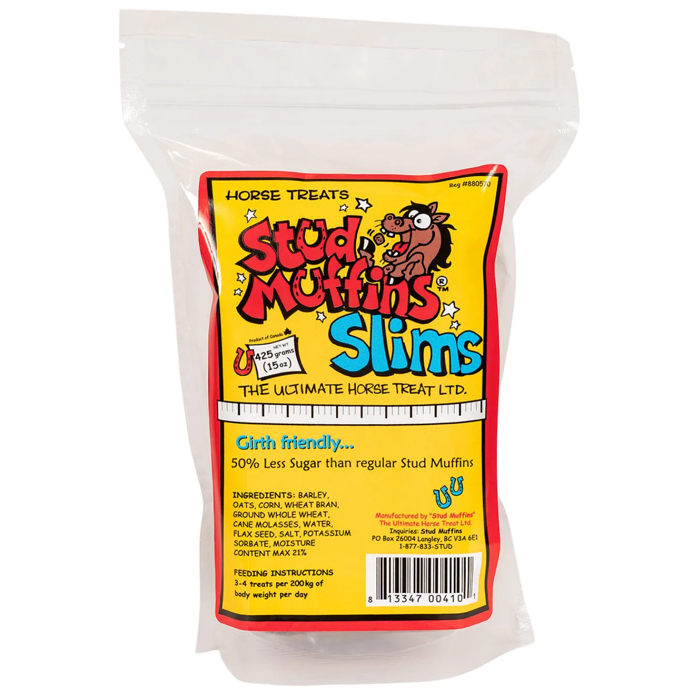 Handmade girth friendly treats that contain 50% less sugar than original Stud Muffins. Each treat contains grains such as wheat, oats, barley, and corn, and are fortified with flaxseed and other wholesome ingredients, ensuring they’re as healthy as they are enjoyable.