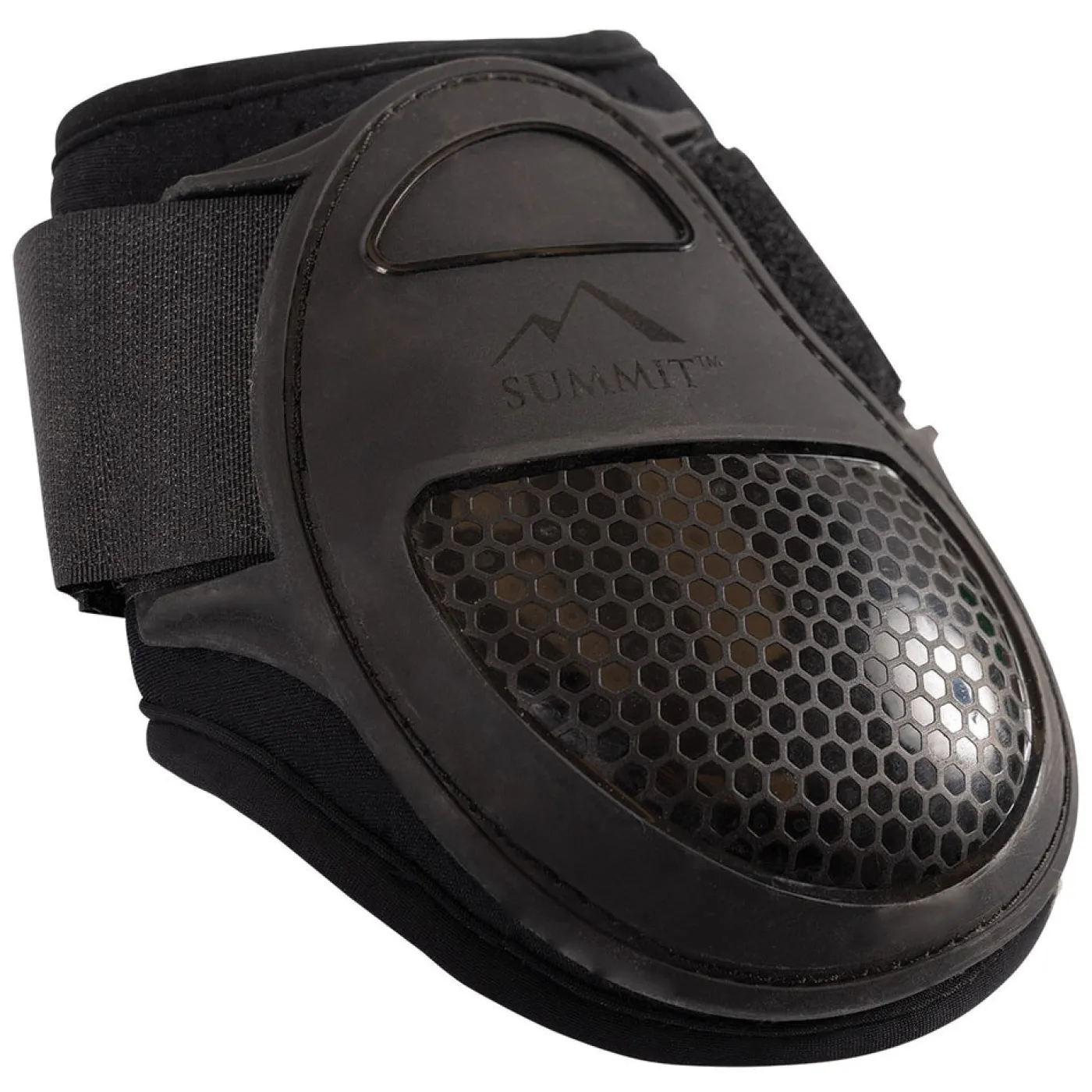 The Summit Hind Fetlock Boot is made to match the Open Front Boots, offering an elegant construction with an anatomic shape. Features a double ventilation system to help channel heat away from the horse’s leg. Complete with elastic hook and tab closures for easy on and off.