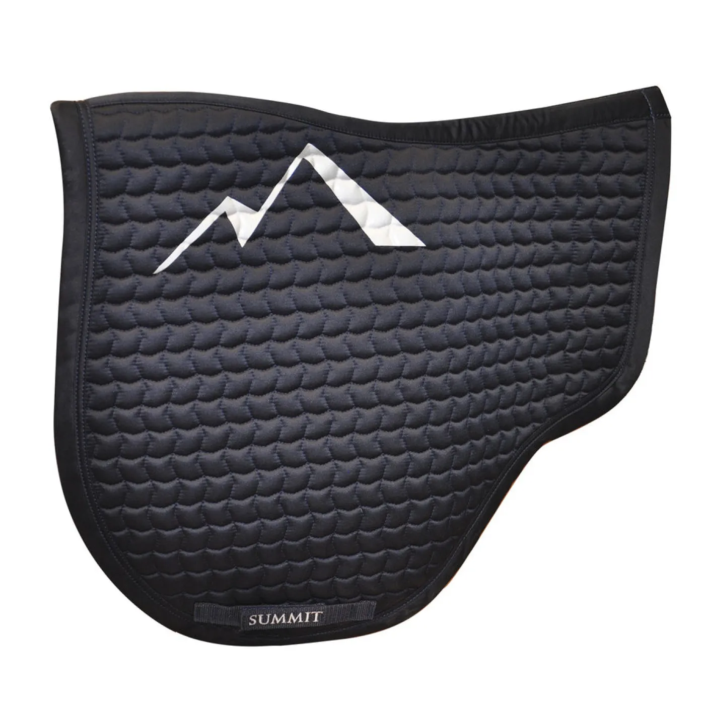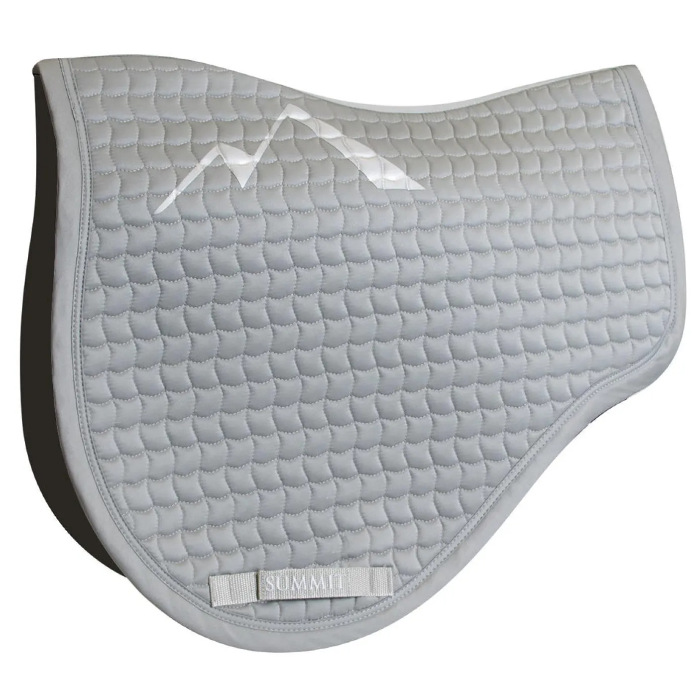 Make a bold statement with Summit’s Prix Saddle Pad featuring a trendy euro cutaway hem and chic 10 mm flat tone-on-tone piping. Soft yet durable quilted cotton underside offers supreme comfort for your horse and the non-slip branded silicone grip text helps stabilize your saddle. Complete with Velcro girth loops. Billet straps not included.