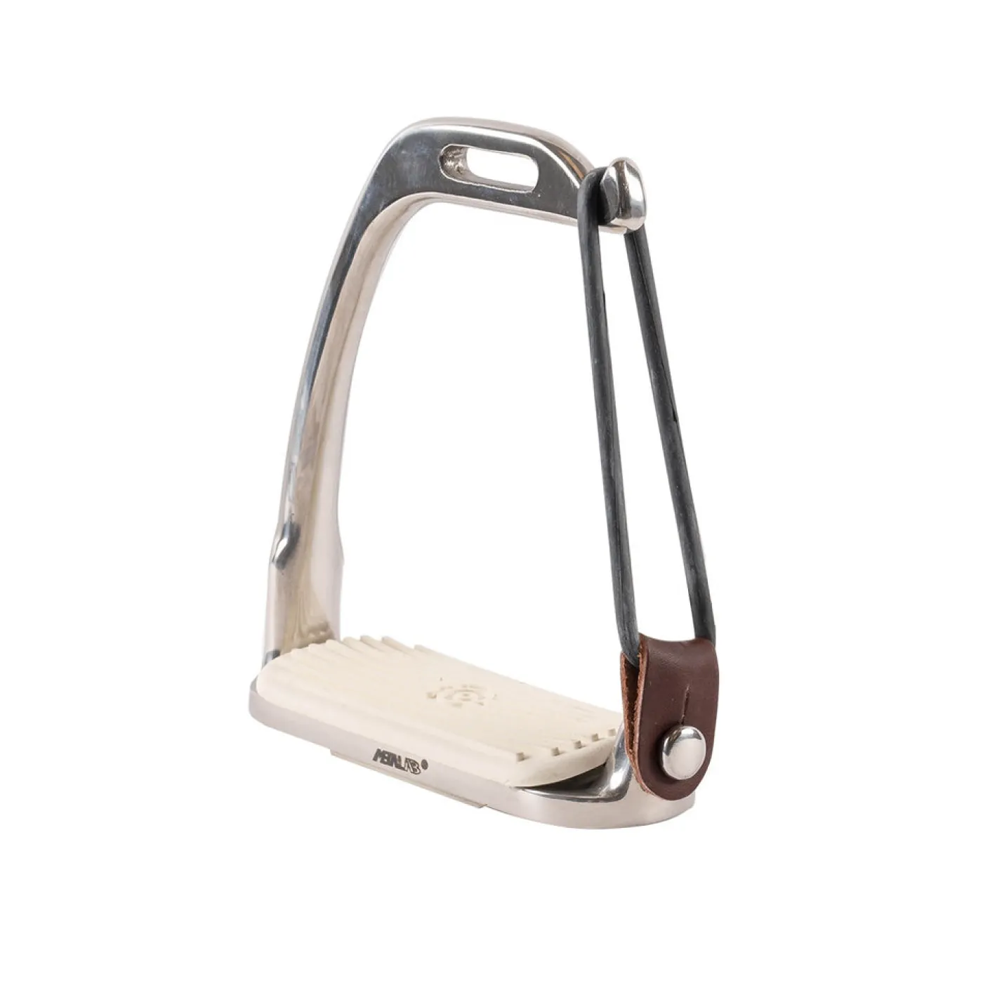 Lightweight and durable, these stainless steel safety stirrups feature a rubber ring that releases in the event of a fall to help the foot come out of the stirrup. Comes complete with rubber bands and foot tread. Ideal for everyday use. Sold as a pair.