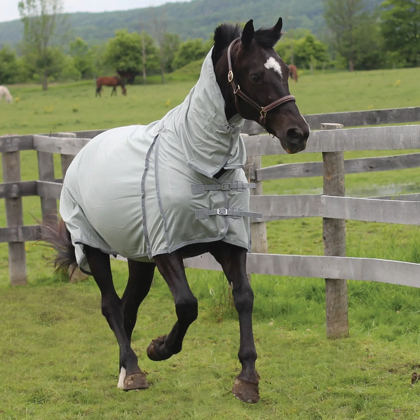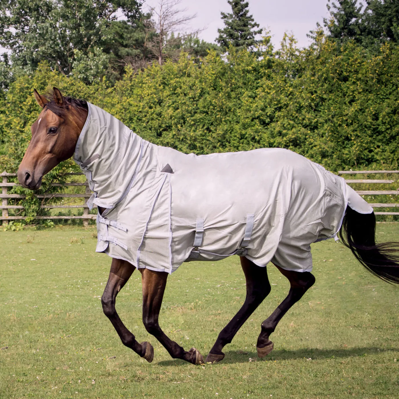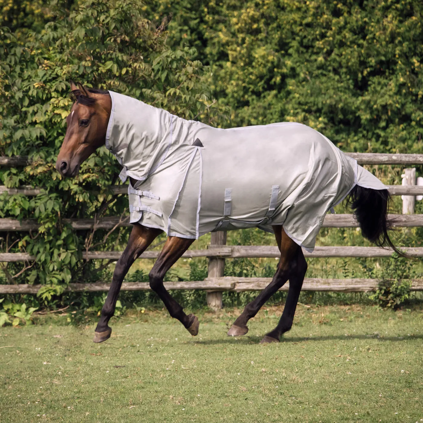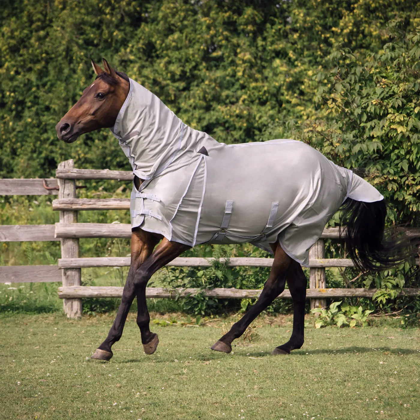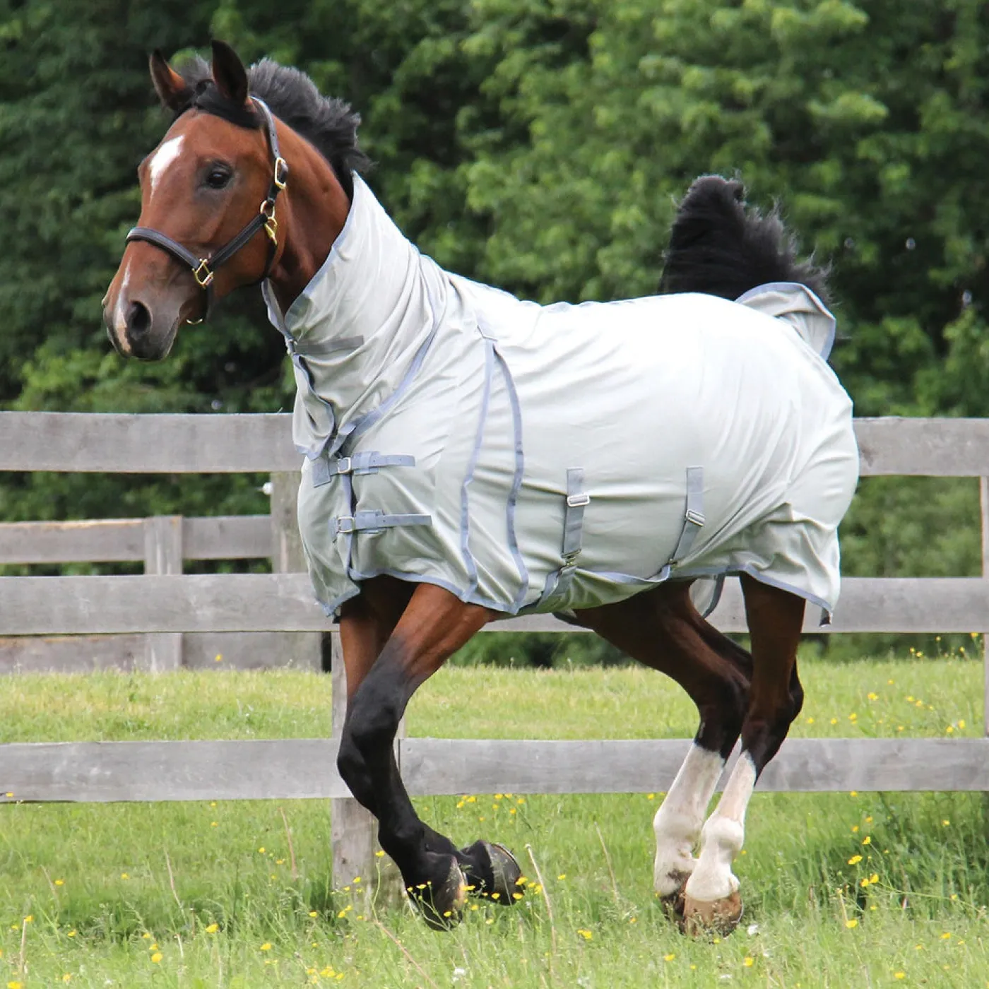 Full coverage fly sheet covers sensitive areas with a high neck extension and wide belly band. A deep shoulder gusset offers maximum freedom of movement while the lightweight deluxe mesh material offers maximum airflow. Double Velcro closures and a D-ring Velcro fastener under the throat offer a more secure fit. Complete with back leg straps.