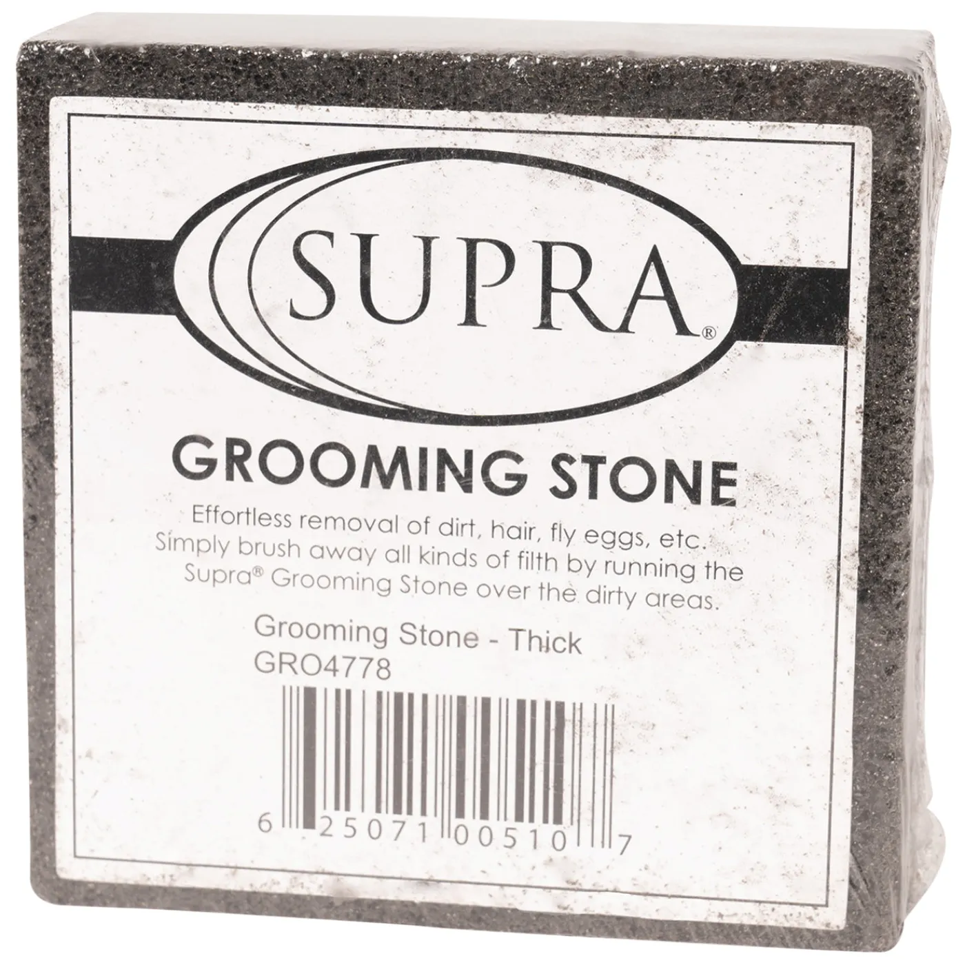 The Supra Grooming Stone is a long lasting and lightweight grooming tool that helps to remove dried mud, dirt, debris and shedding hair from the horse. The Grooming Stone uses a gentle surface action to grab loose hair without irritating the skin. May also be used on cats and dogs or on clothing and furniture.