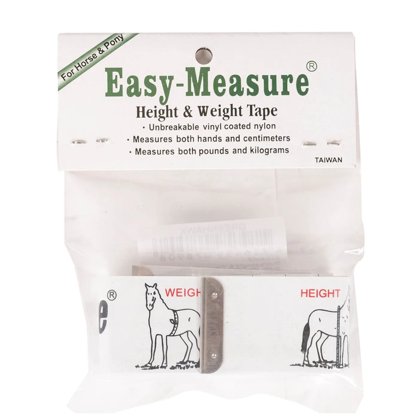 Measure your horse’s height and weight in one handy, small measuring tape. This portable, packable measuring tape features horse height on one side and horse weight on the other. Height is shown in both centimeters and hands, while weight is shown in both pounds and kilograms. Includes visual images of where to measure for accurate readings. The small size makes this perfect for use when horse shopping or traveling. Handy for tracking the growth and development of young horses, or for tracking weight loss in easy keepers. Made from extra durable, vinyl coated nylon.