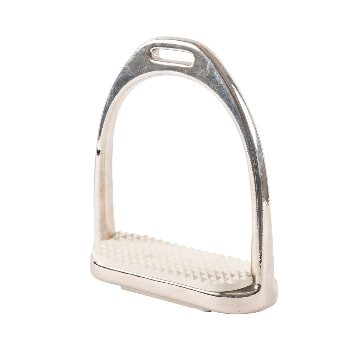 The Supra Knife Edge Stirrups are a great choice for everyday use. Similar to a standard stirrup iron, knife edge stirrups feature narrower sides and a slightly heavier base. 4 1/2″W foot bed. Made from stainless steel. Complete with white rubber treads. Sold as a pair.