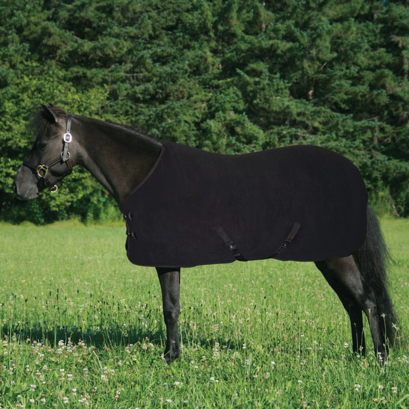 Soft heavyweight fleece and anti pilling properties make this anti-sweat sheet ideal for cooling your mini after a workout or to help dry the coat after a bath. Complete with crossed biased surcingles and two front straps for a great fit. 380 gm fleece both looks and feels luxurious. Not intended for turnout.