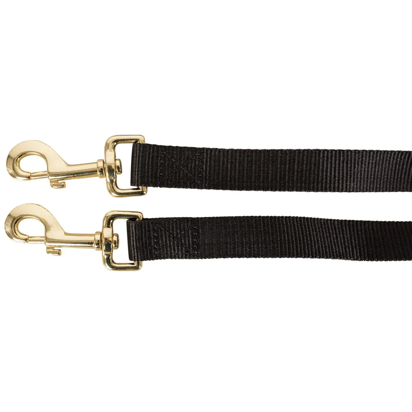 Created with a snap at one end and a loop at the other to easily secure water or feed tubs to stall fronts while stabling at shows or fair grounds.