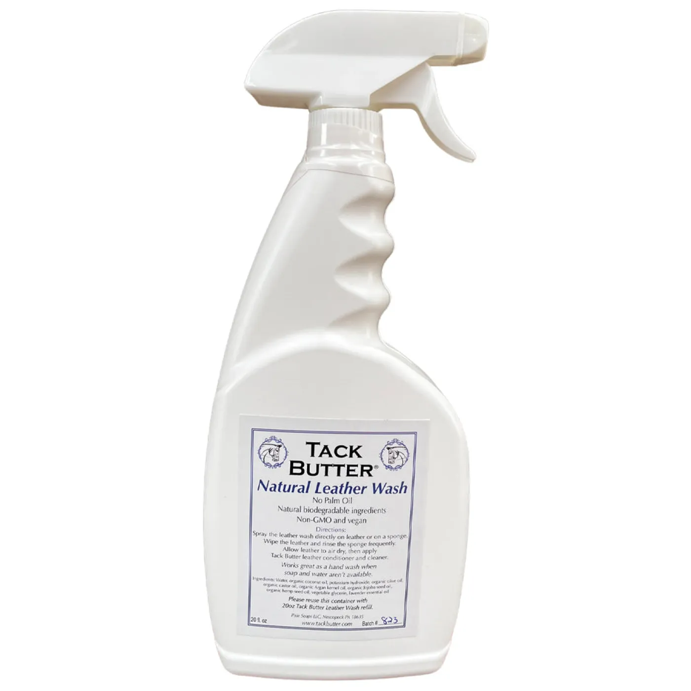 Tack Butter Natural Leather Wash is a safe and effective way to clean your leather. The natural, organic ingredients are gentle enough for everyday use. Leather Wash also works great as a quick cleanser for your hands – when a sink isn’t available, just spray your hands and wipe them off with a cloth or paper towel. Use with Tack Butter Natural Conditioner & Cleaner to keep your leather clean, soft and supple.