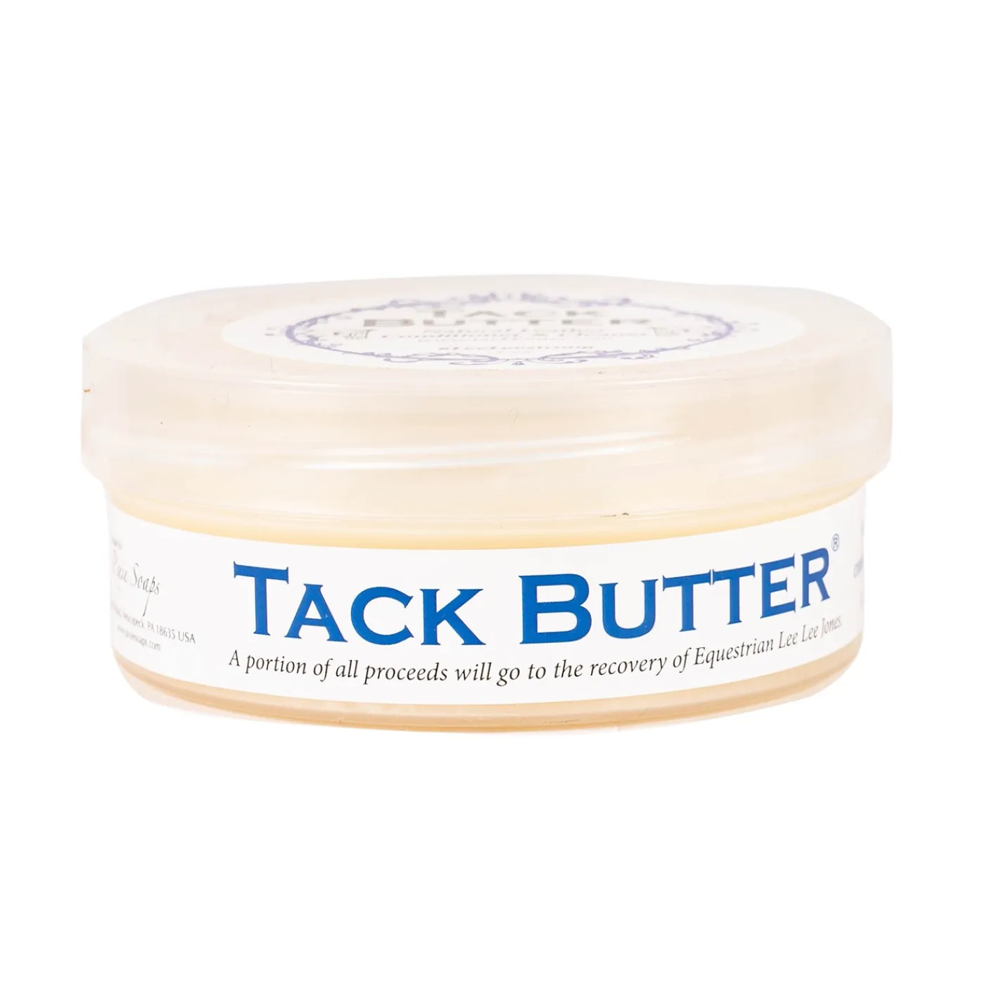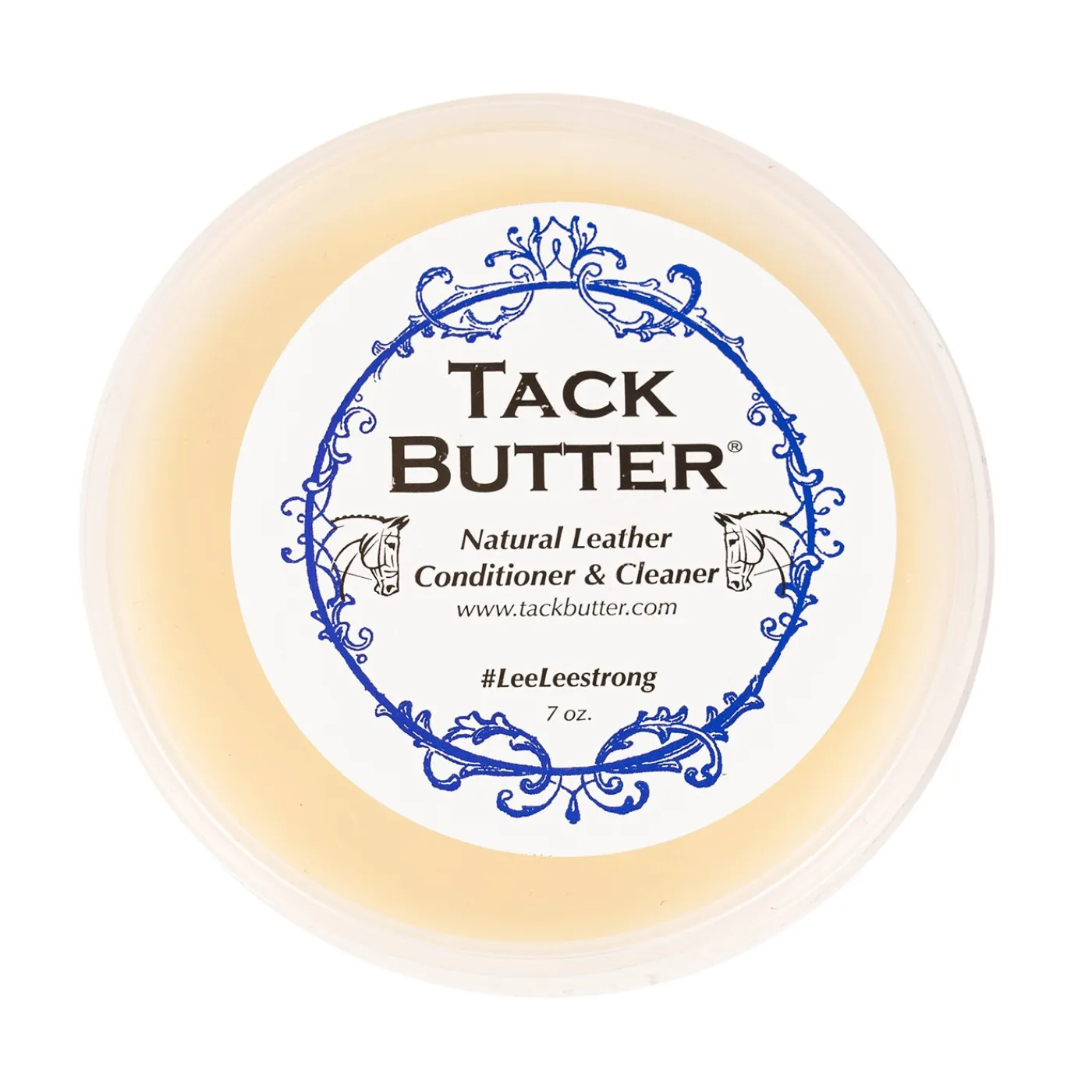 Tack Butter Original Natural Leather Conditioner & Cleaner is a natural, avocado oil based leather care product that is also skin safe and contains the soothing scents of therapeutic lavender and eucalyptus. Developed with the help of Olympic Groom Emma Ford, it spreads easily onto your leather and soaks right in without making leather sticky or tacky. Cocoa butter helps bring all kinds of leather back to life, and beeswax helps create a shield. With every sale, Tack Butter donates to the recovery of Equestrian Lee Lee Jones. 7 oz.