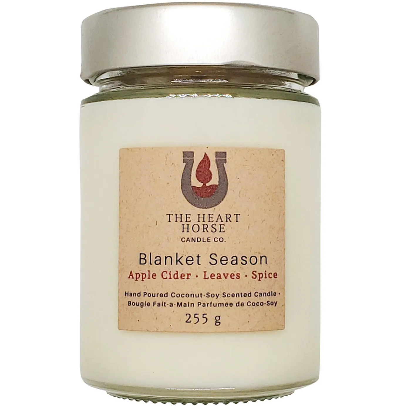 The Heart Horse Candle Co. “Blanket Season” candle features the warm and cozy scents of Apple Cider, Leaves, and Spice. Hand crafted in small batches using coconut-soy wax and high quality fragrance oils. Free of paraffin, phthalates, and dyes with 100% cotton wicks that burn up to 40 hours. Perfect as personal decor or as a gift!