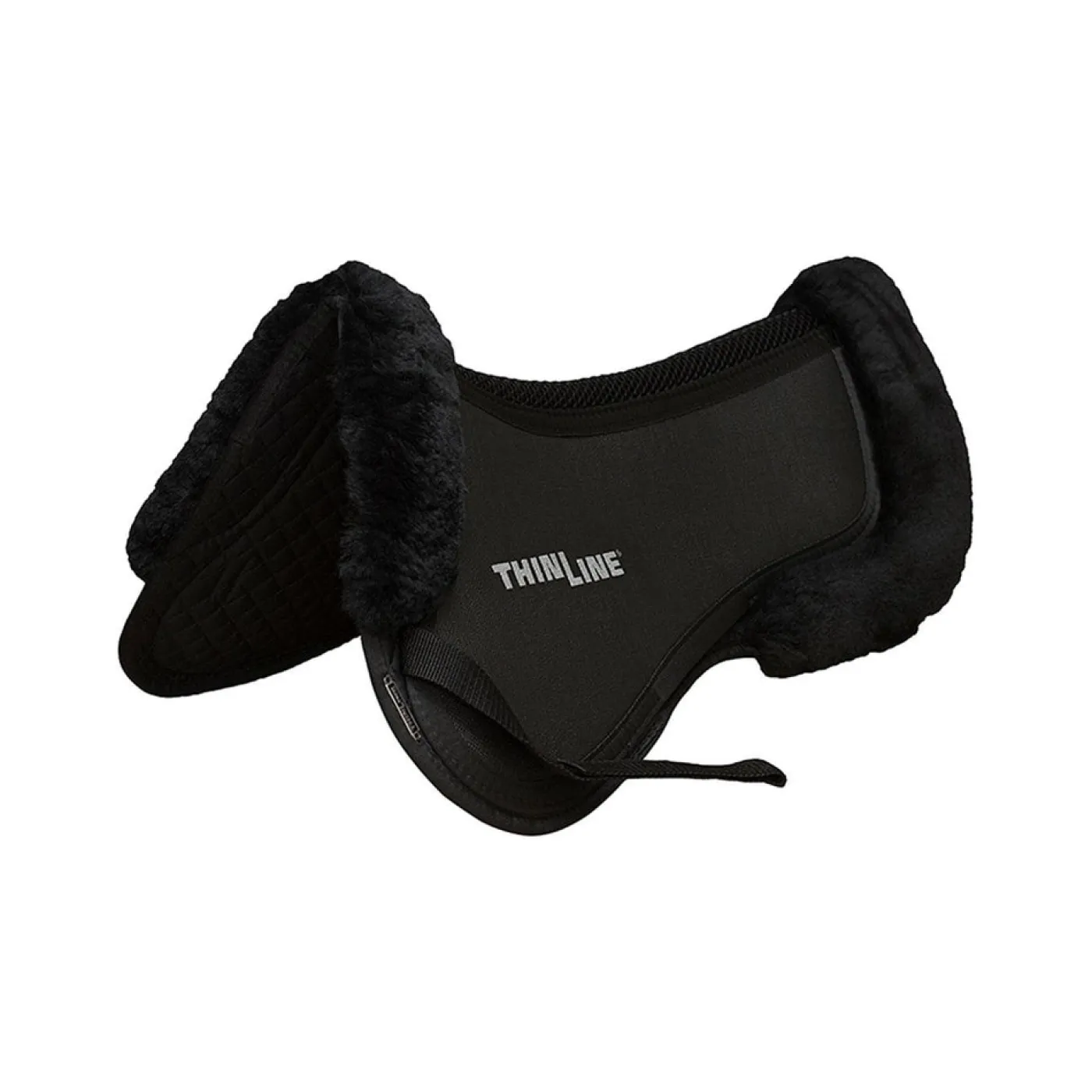 The look of a beautiful sheepskin pad without the extra bulk, the ThinLine Trifecta Cotton Half Pad with Sheepskin Rolls is now on a heavier duty cotton quilted base pad with the ThinLine panels for horse and rider comfort. An increased depth along the shoulders now allows for deeper shim pockets and more contact along with the tree points of English saddles. A larger contoured shape creates easier wither clearance for horses of all shapes. With a ventilated spine-free channel, this pad lays evenly on either side of the spine. Always in the right place, allowing the horse to work effectively through their back. Delivering the maximum in shock absorbency in the minimum thickness, add this pad under your well-fitting saddle for maximum comfort for both horse and rider. Designed with pockets to allow for shims to help achieve ideal saddle fit. Useful for riding multiple horses, horses in training and aging horses. Shims are sold separately.