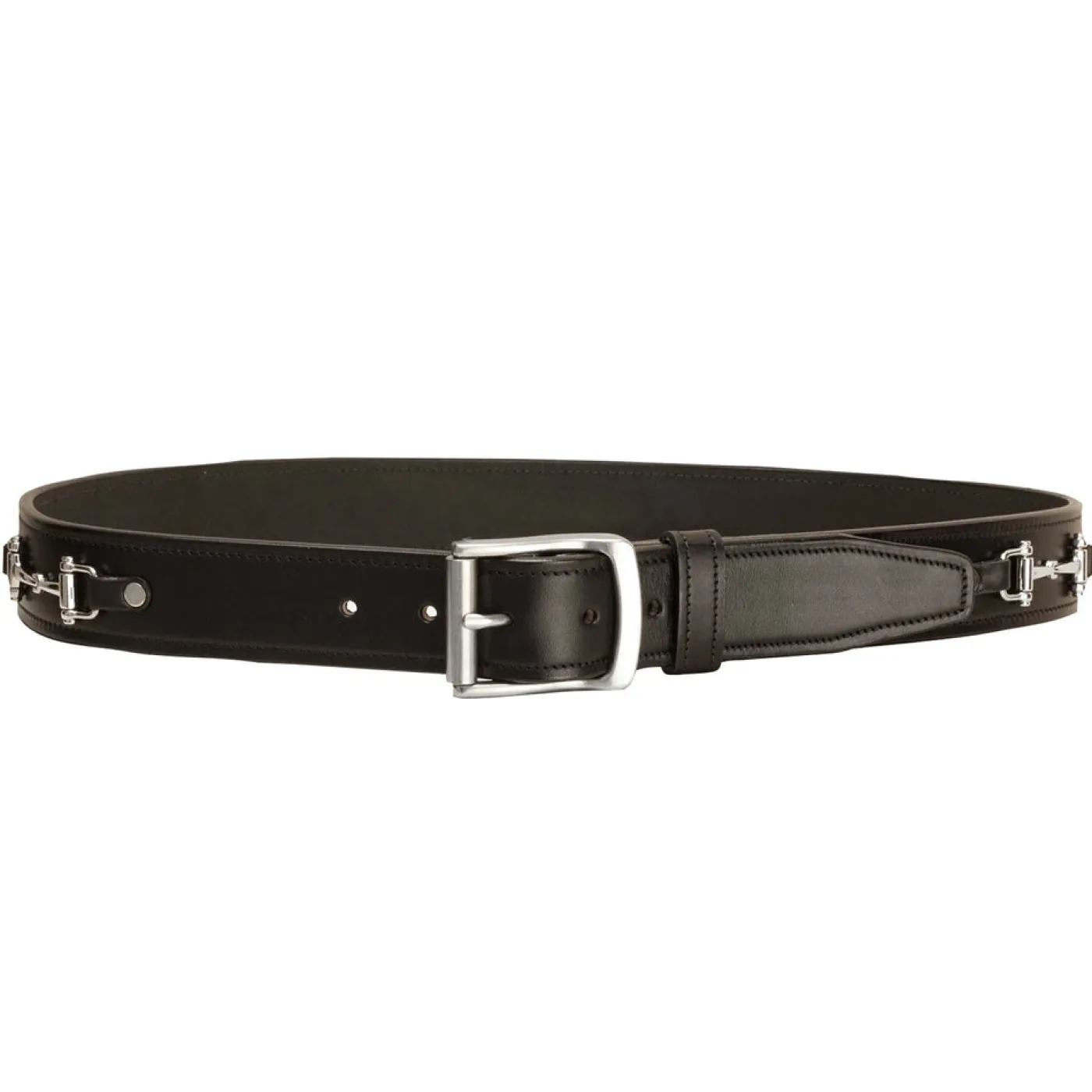 Made from 1 1/2″ bridle leather with stitched edges, the Tory Leather Belt with Snaffle Bits combines classic style and eye-catching sparkle. Two snaffle bit accents add a touch of flair to Tory Leather’s signature craftsmanship. Snap construction allows buckles to be changed. The perfect choice for any equestrian.