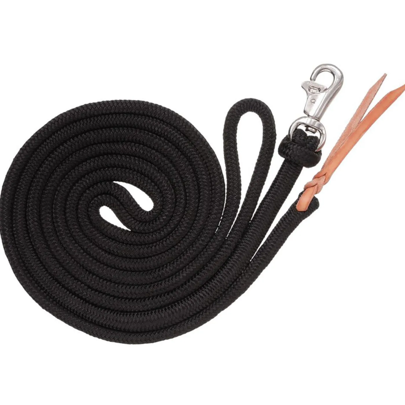 The Tough1 14′ Training Lead is made of strong, high quality yachting rope and is suitable for working horses on the ground. Complete with attached leather popper end and a sturdy nickel plated Triggerbull snap.