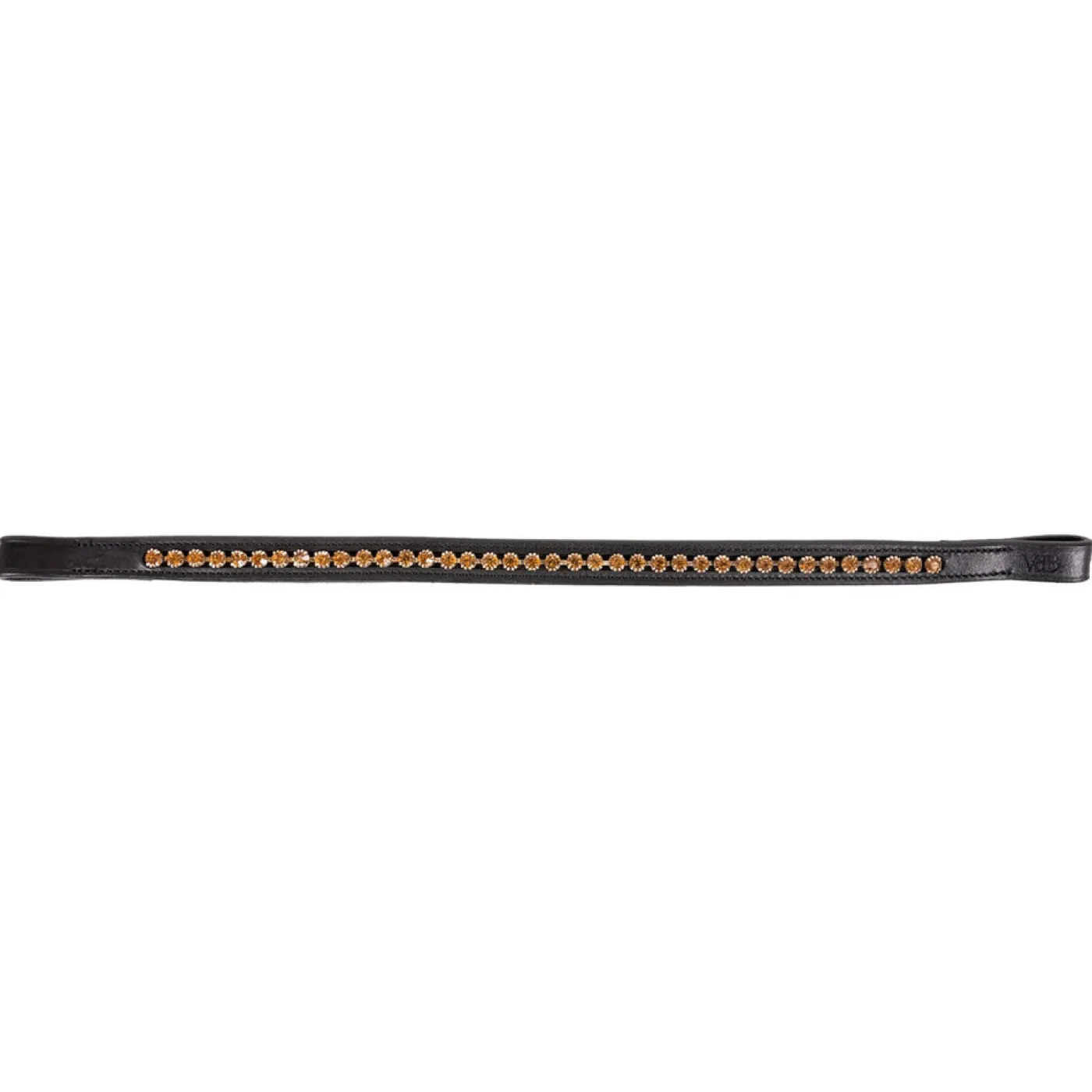 The browband runs through the crown piece of the bridle and sits along the lower part of the horse’s ear, running across the forehead. The Val du Bois Browband is suitable for the Dressage ring and features elegant yellow crystal detailing. Made with exquisite vegetable tanned leather.
