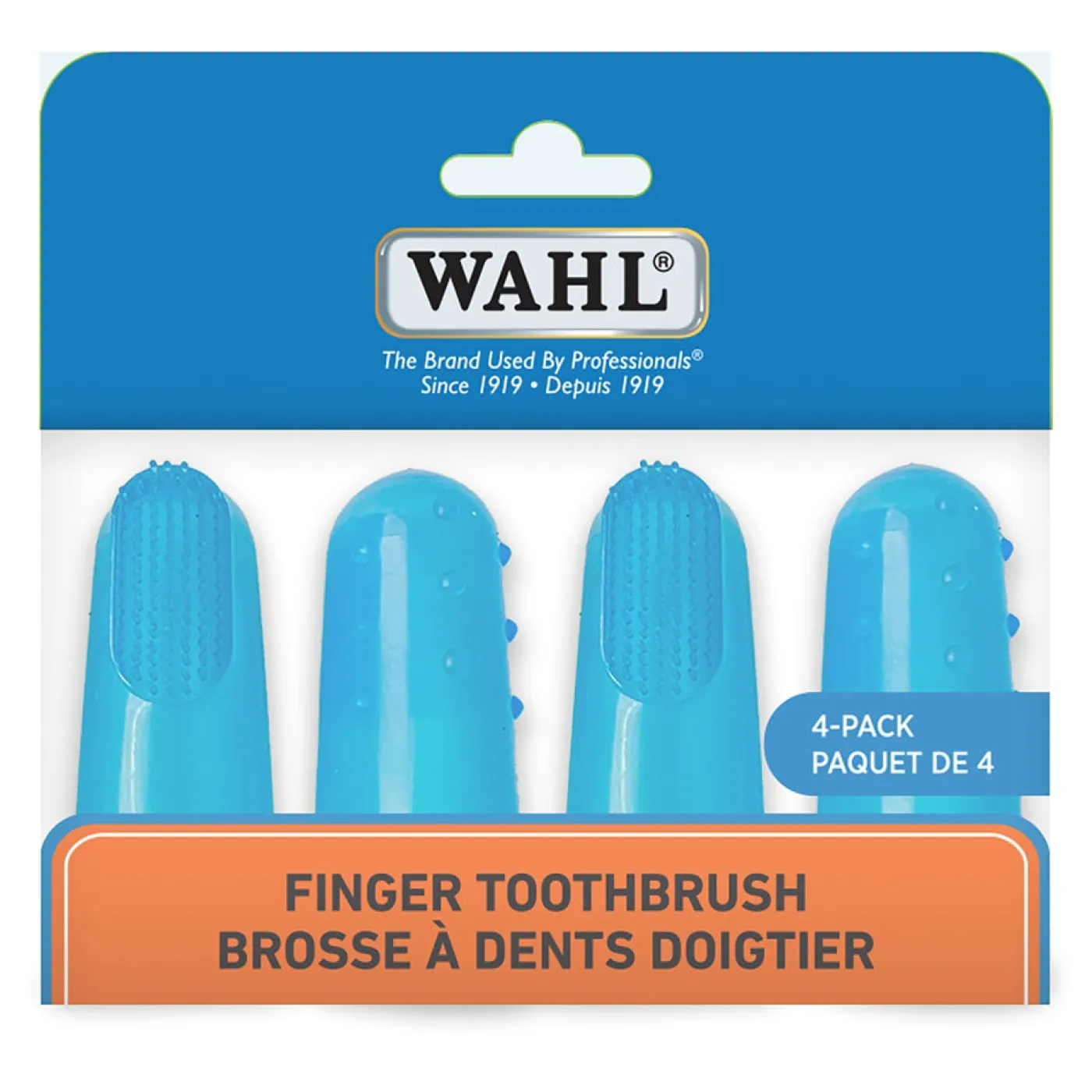 Keep your pet’s teeth sparkling clean with the Wahl 4 Pack of Finger Toothbrushes. From the brand trusted by professionals since 1919, Wahl Finger Toothbrushes are designed to remove food residue and debris from teeth. These toothbrushes come with front bristles for cleaning and back pimples for gum massage. Available in a pack of four for easy replacement. Each finger toothbrush fits a standard adult finger. Can be used for cats or dogs!