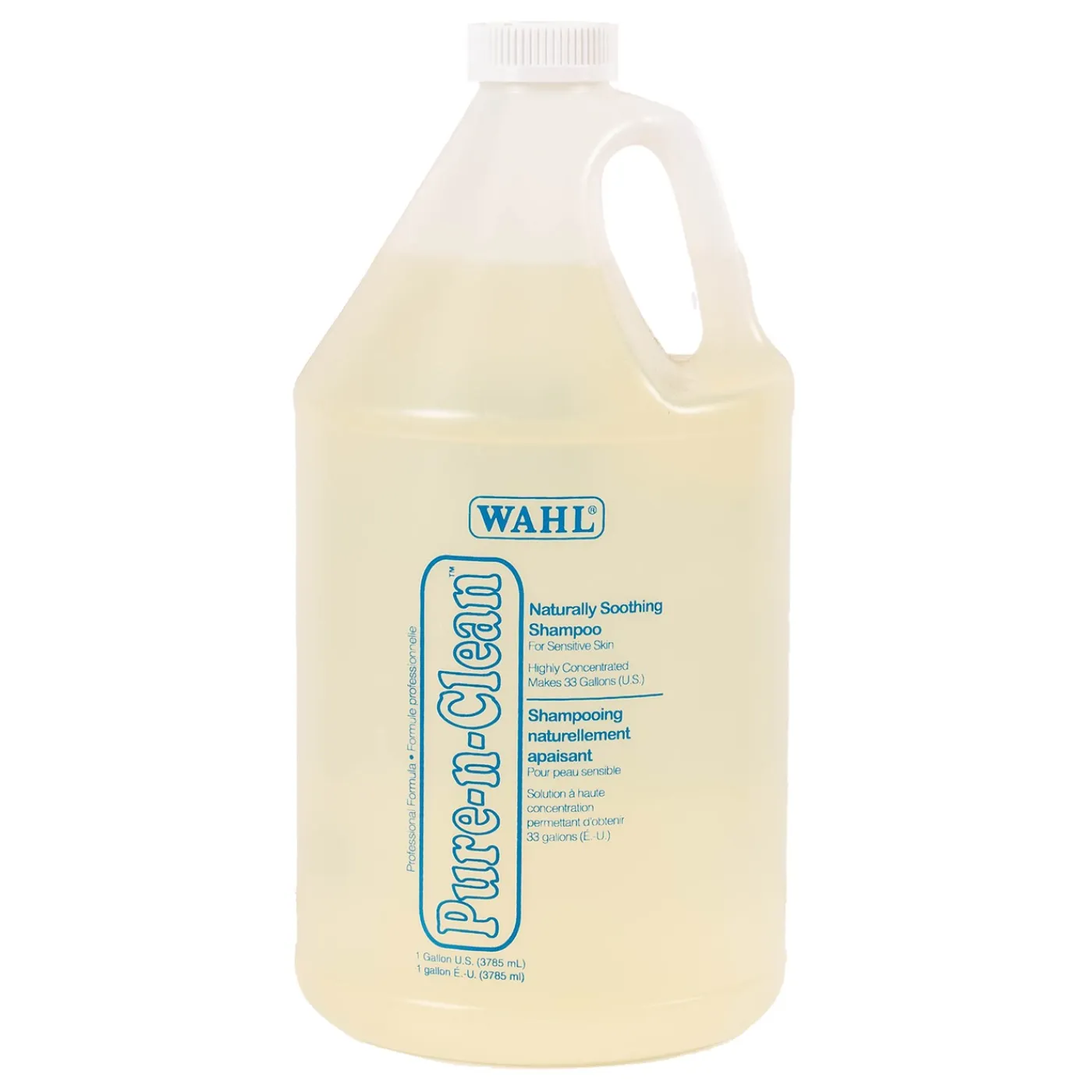 Wahl Pure N Clean Shampoo is a highly concentrated, thick and clear shampoo. Specially formulated with a hypo-allergenic design, Wahl Pure N Clean Shampoo is created to reduce allergic reactions and offers thick suds, mild cleansing and rinses out easily, leaving your dog’s coat with a lustrous shine! 1 Gallon.
