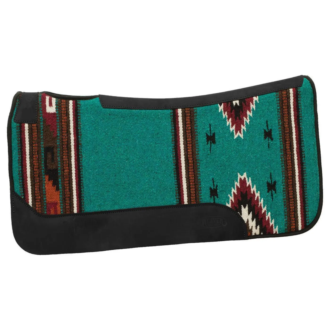 Contoured saddle pad features a single weave topper design inspired by beautiful southwest-style rugs. A ¾” wool blend felt liner helps absorb shock and wicks moisture away from your horse. 31″ x 32″.