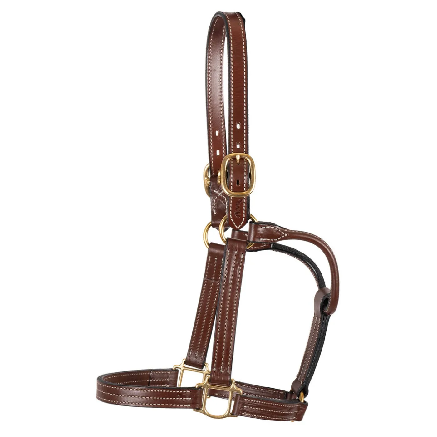 The Weaver Leather Thoroughbred Halter is made with oil dipped mahogany bridle leather and features smoothed and darkened edges. It has been triple stitched on the cheek pieces and fitted with solid brass hardware.