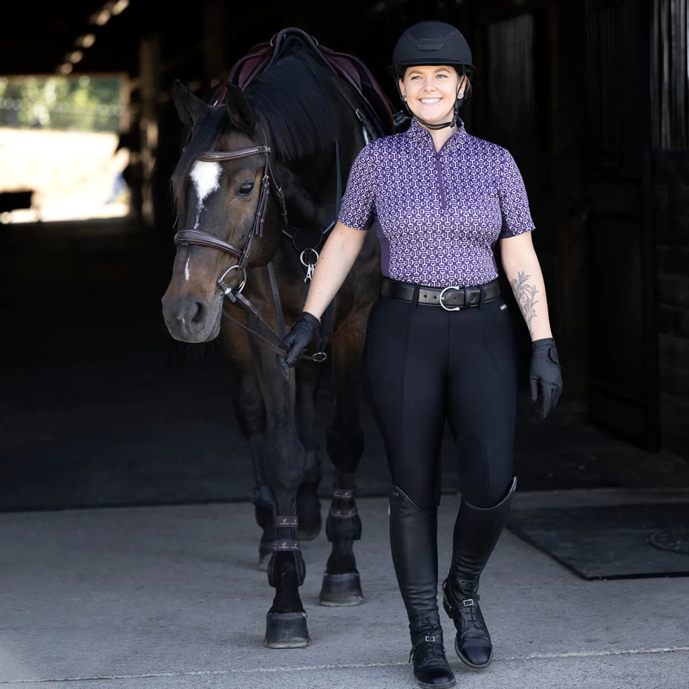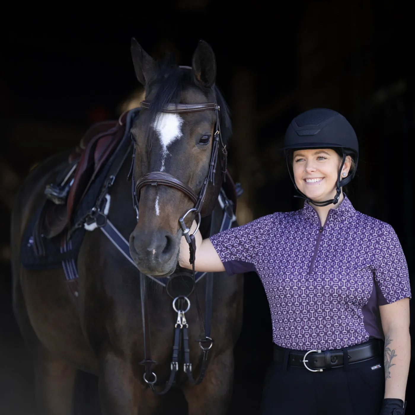 Kerrits lightest weight short sleeve riding shirt, designed in playful equestrian prints that let you confidently show your style, providing flattering coverage while camouflaging barn dirt. The whisper light Ice Fil® fabric cools, breathes, and protects with UPF+30. Contrasting side panels carve a flattering silhouette, enhancing the feminine, yet relaxed shape. Two slip pockets for treats and essentials.